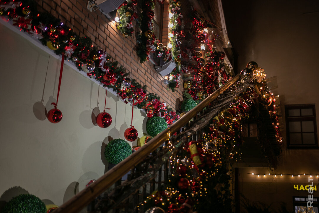 Темнеет и мы спешим на пешеходную Комсомольскую. Хедлайнером здешних мест уже не первый год является ресторан Pinky Bandinsky. Именно на его террасу, декор которой меняется по сезонам, всегда стоит очередь из желающих сфотографироваться. Эта зима — не исключение.