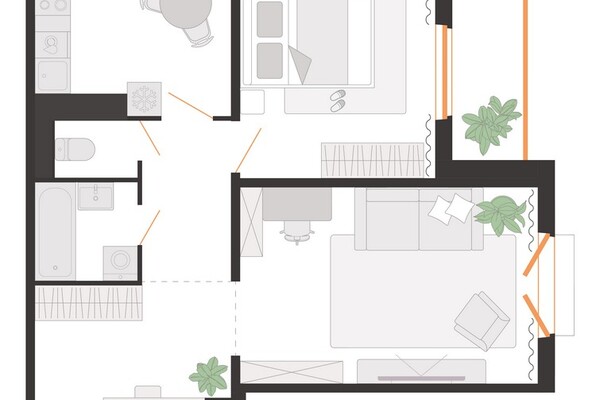 В доме будет 118 квартир — от однокомнатных до трехкомнатных, как с классическими планировками, так и евроформата. Площади жилья составят от 44 до 78 квадратов.