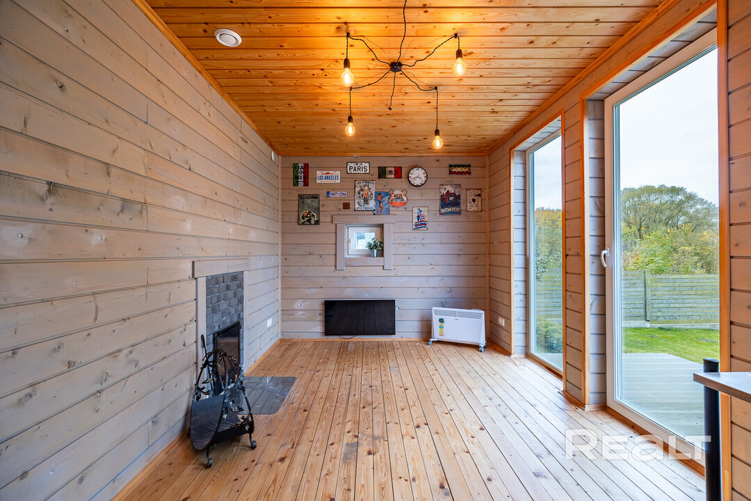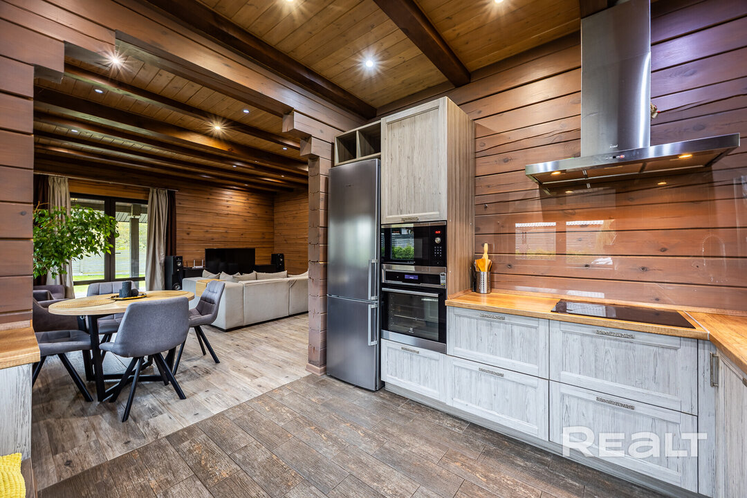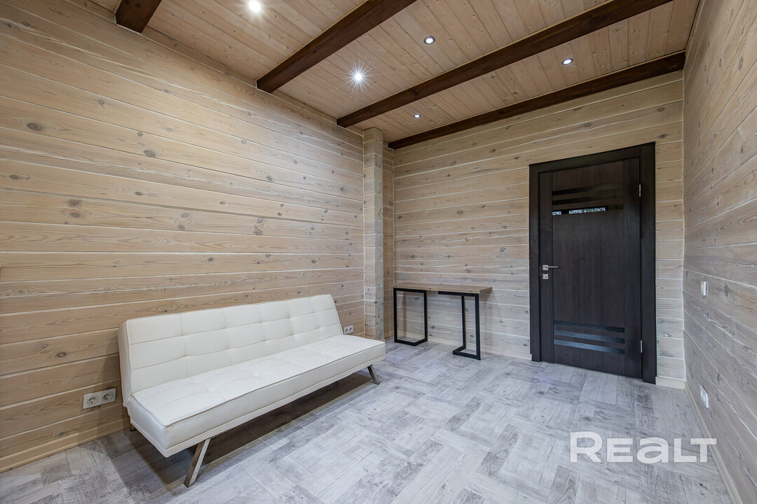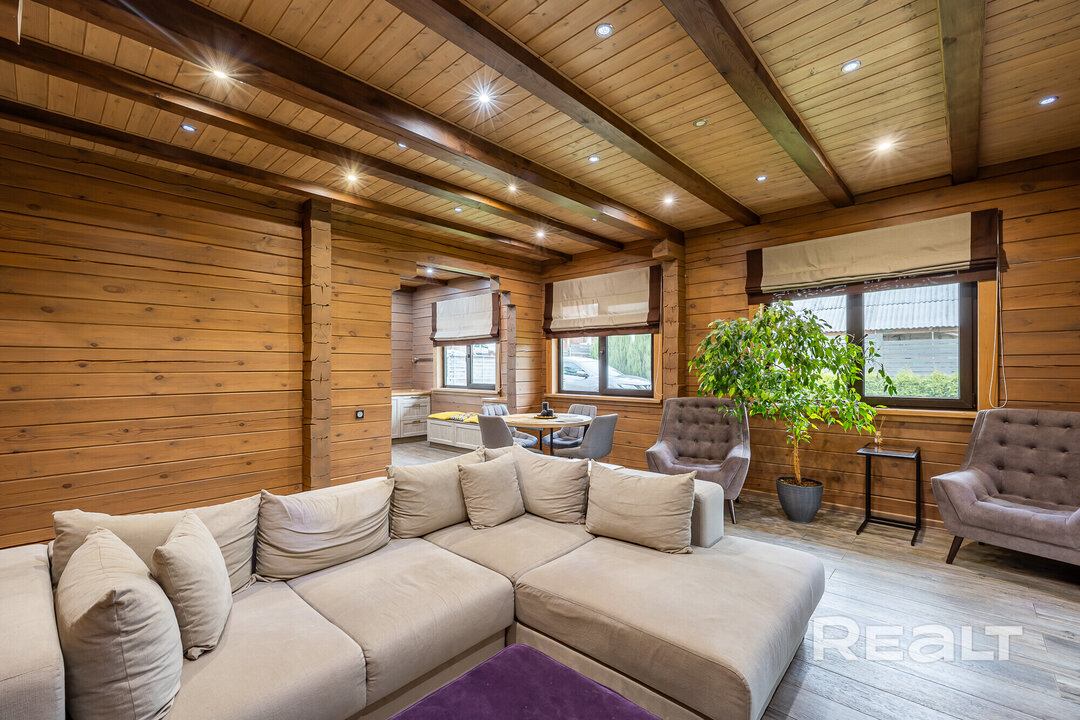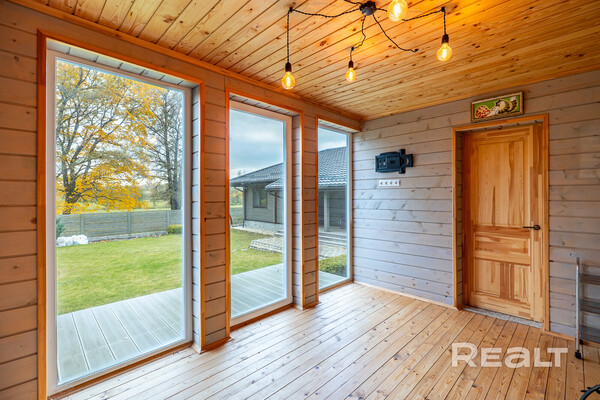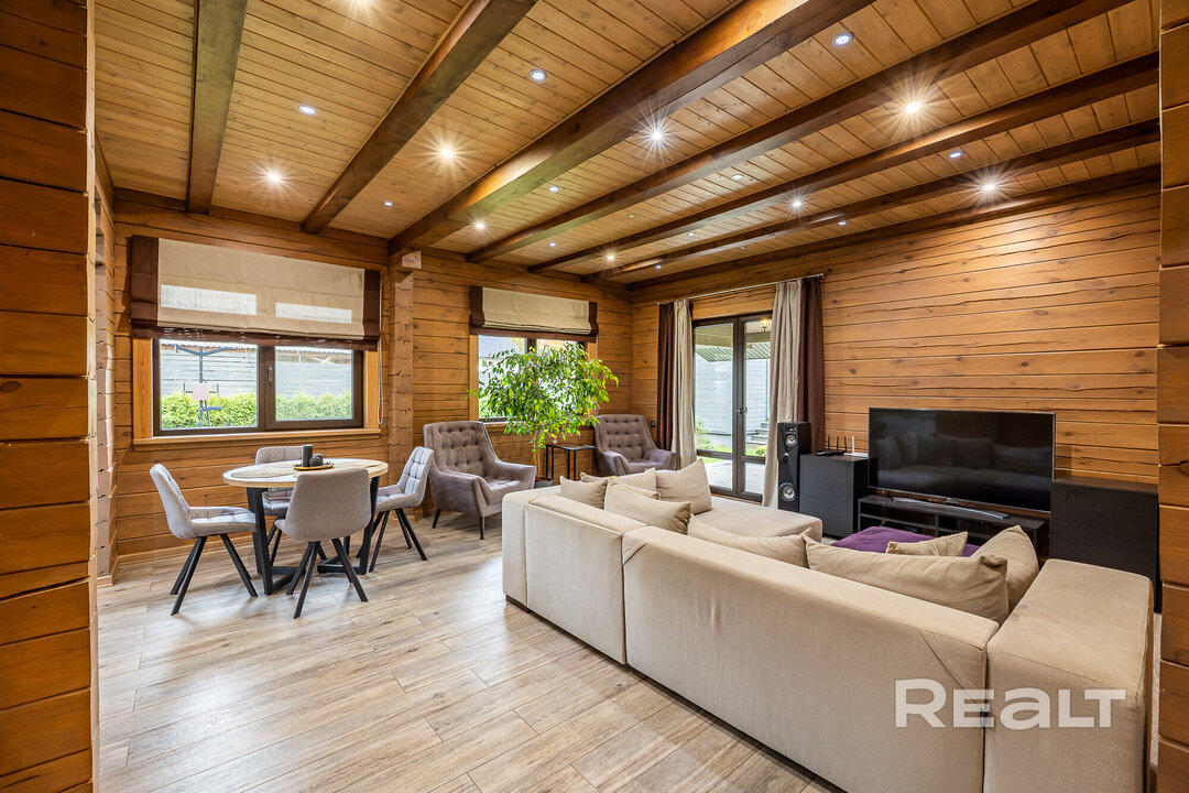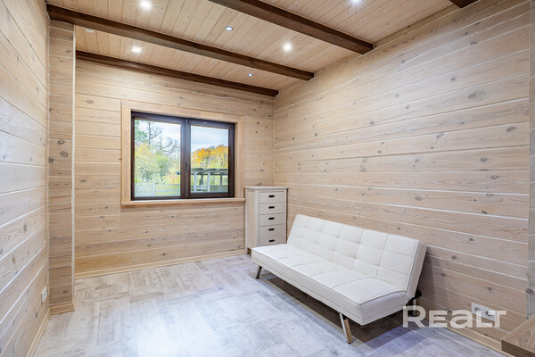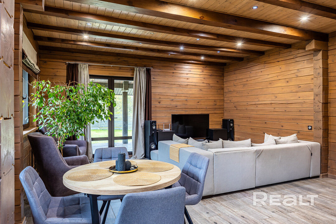 4355Согласитесь, хочется жить в доме, где хорошо не только внутри, но и снаружи — каждый день смотреть на завораживающую природу и наслаждаться простором в комфортных условиях. Именно такое жилье мы нашли в деревне в 20 минутах от Минска. Современный дом из бруса стоит рядом с лугом и речкой. Он полностью готов к проживанию: есть мебель, техника и коммуникации, включая газовое отопление. Посмотрите, какой он уютный. Кстати, на территории есть и баня.