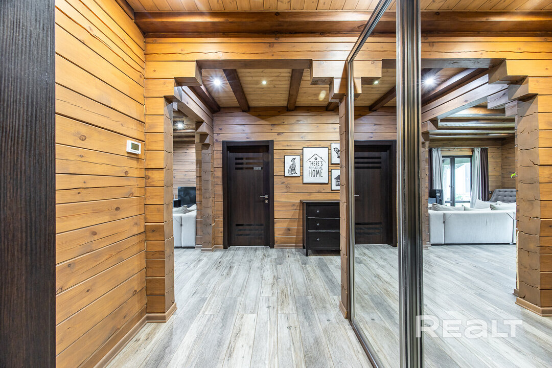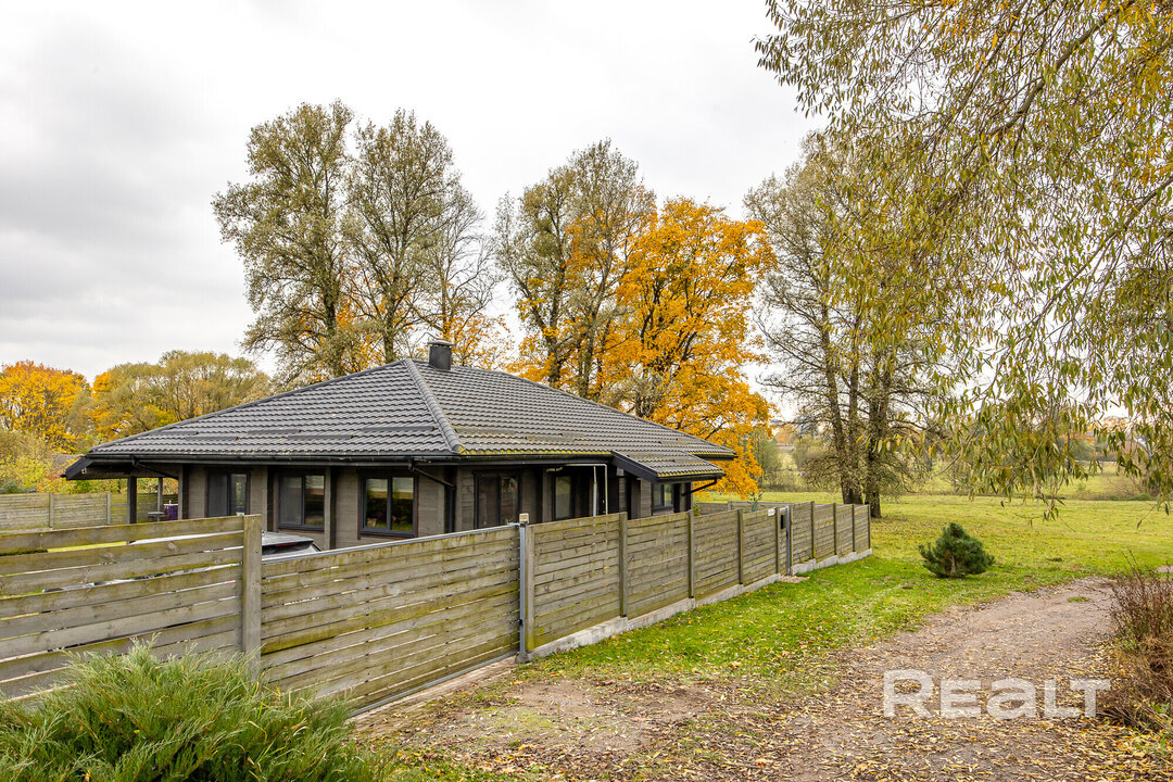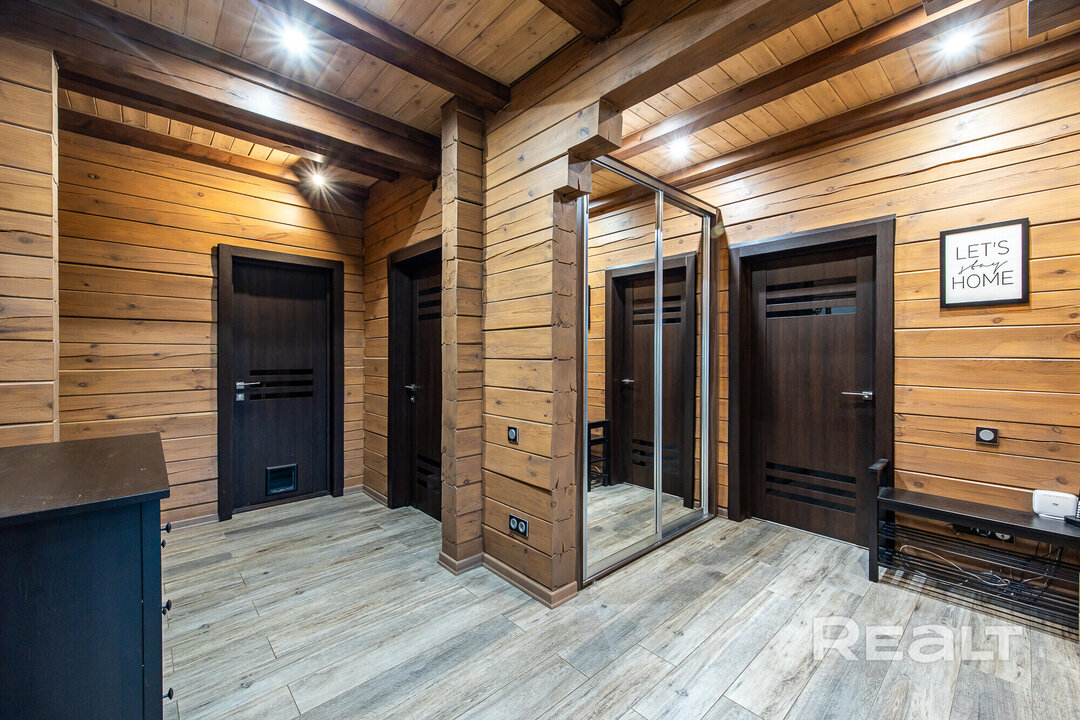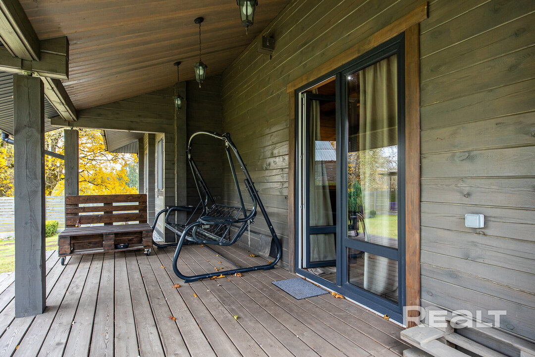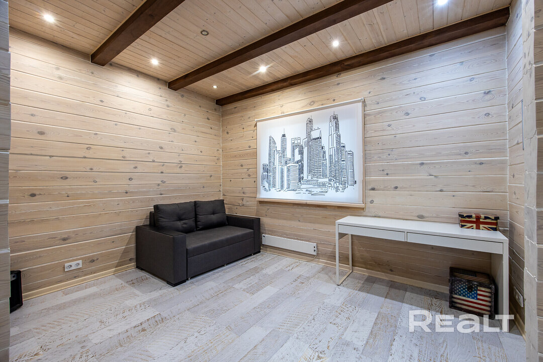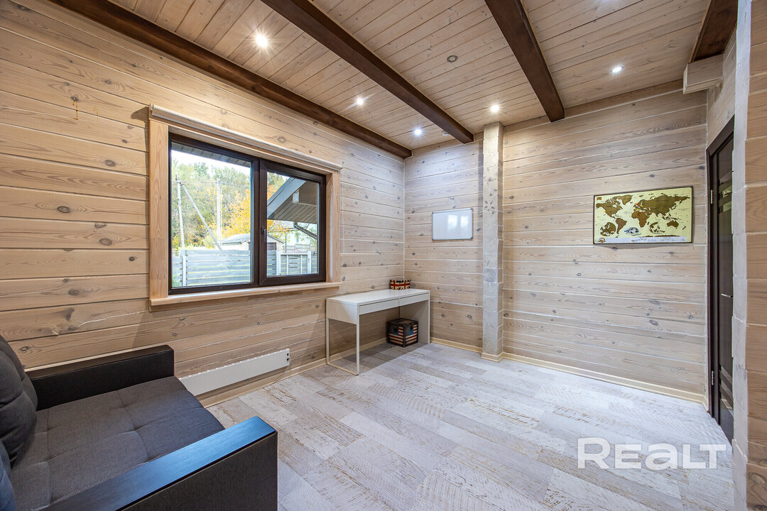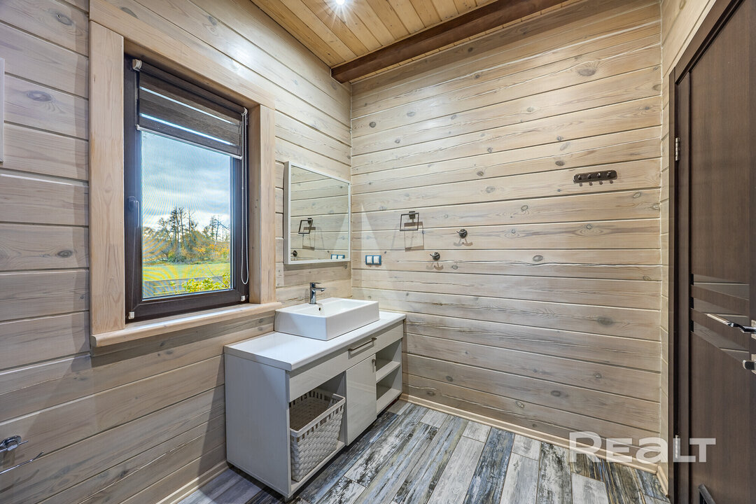 4355Согласитесь, хочется жить в доме, где хорошо не только внутри, но и снаружи — каждый день смотреть на завораживающую природу и наслаждаться простором в комфортных условиях. Именно такое жилье мы нашли в деревне в 20 минутах от Минска. Современный дом из бруса стоит рядом с лугом и речкой. Он полностью готов к проживанию: есть мебель, техника и коммуникации, включая газовое отопление. Посмотрите, какой он уютный. Кстати, на территории есть и баня.