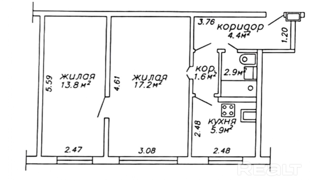 Цена за квартиру составляет 97 тысяч долларов. Один квадрат — 2 118 долларов.