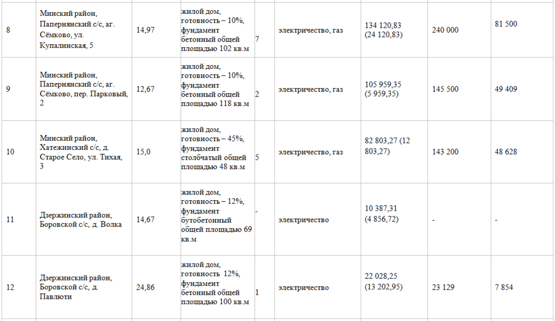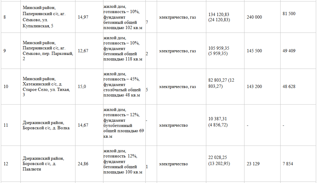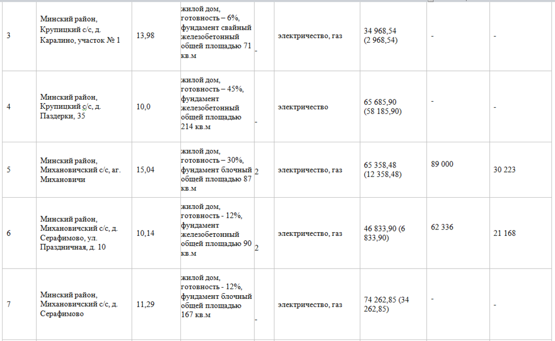 В Минском районе на аукцион было предложено 10 недостроев разной степени готовности. Торги прошли по 7 лотам.