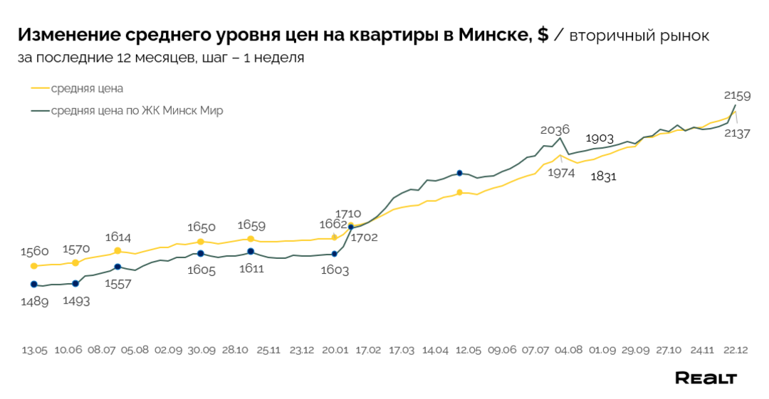 Минск-Мир подорожал за неделю на 3%. Что произошло на вторичке столицы 15−21 декабря