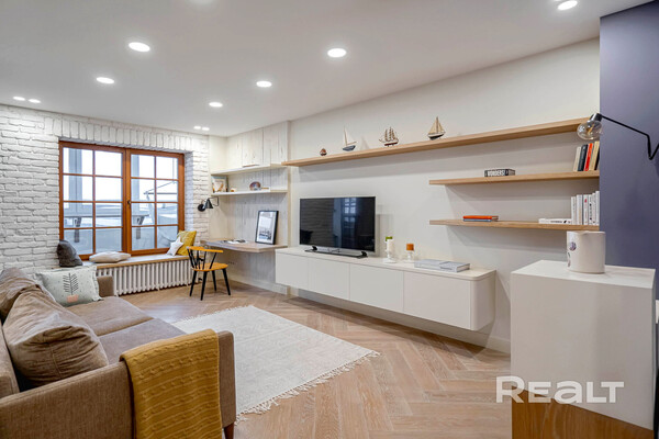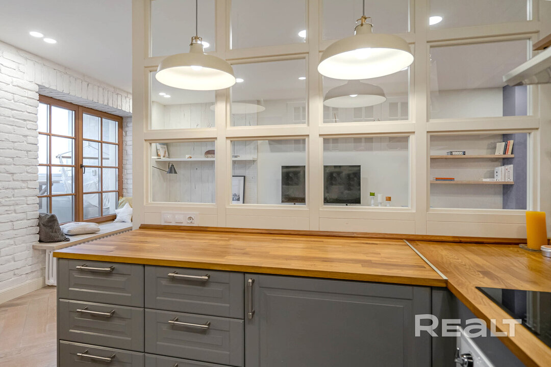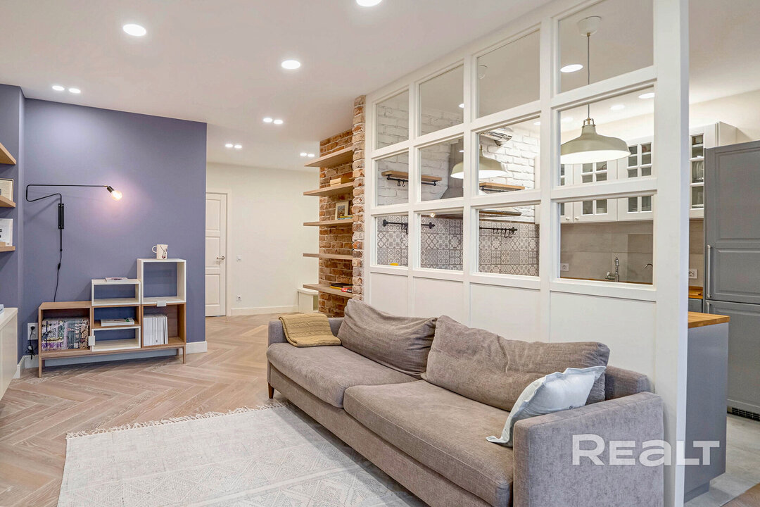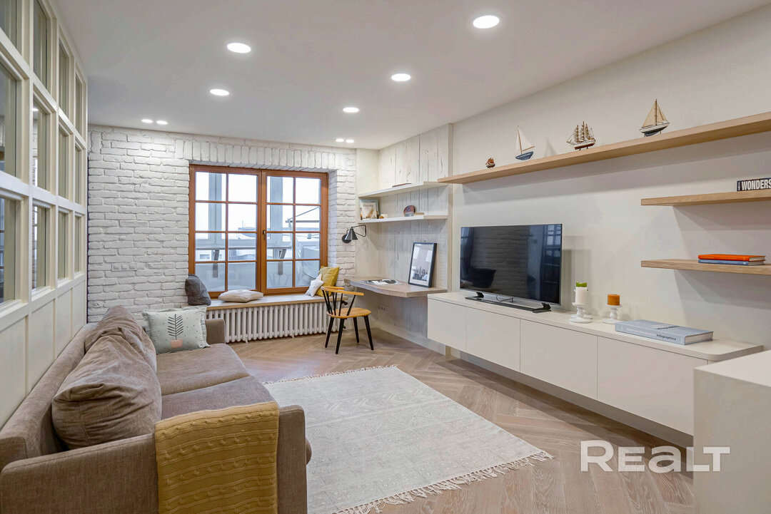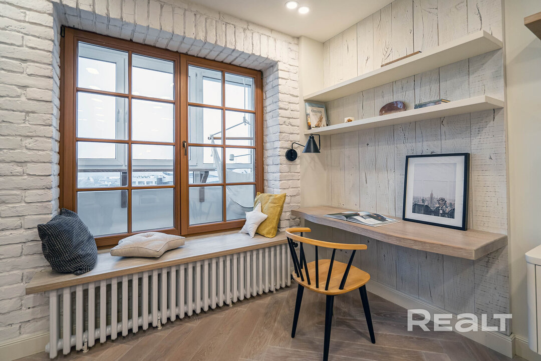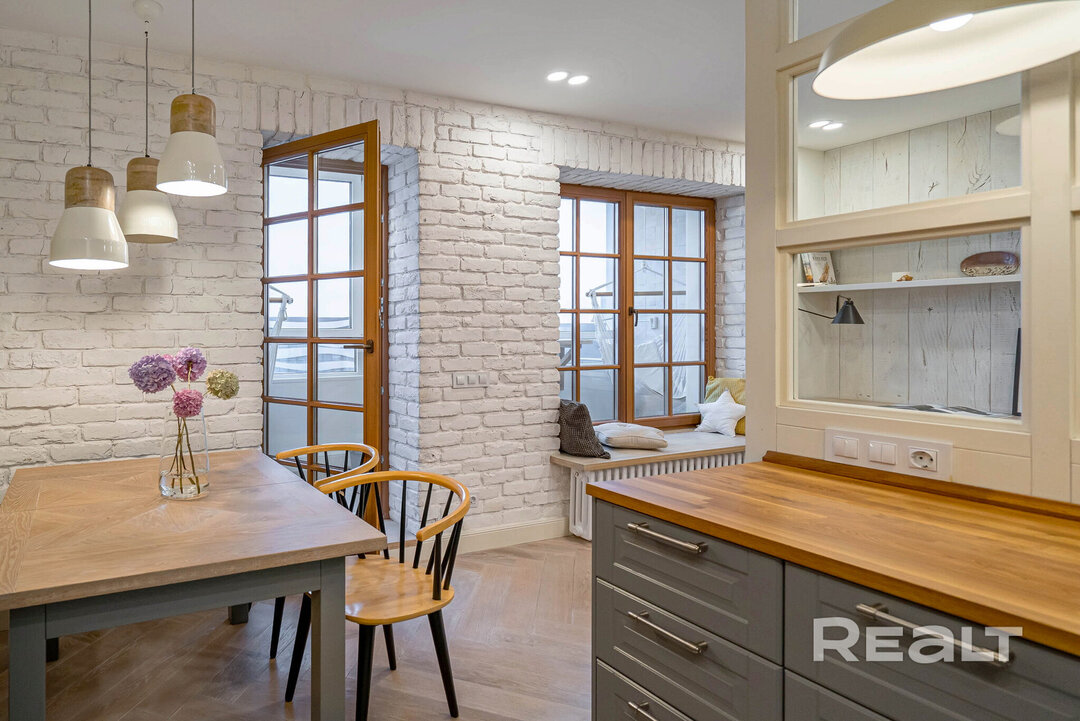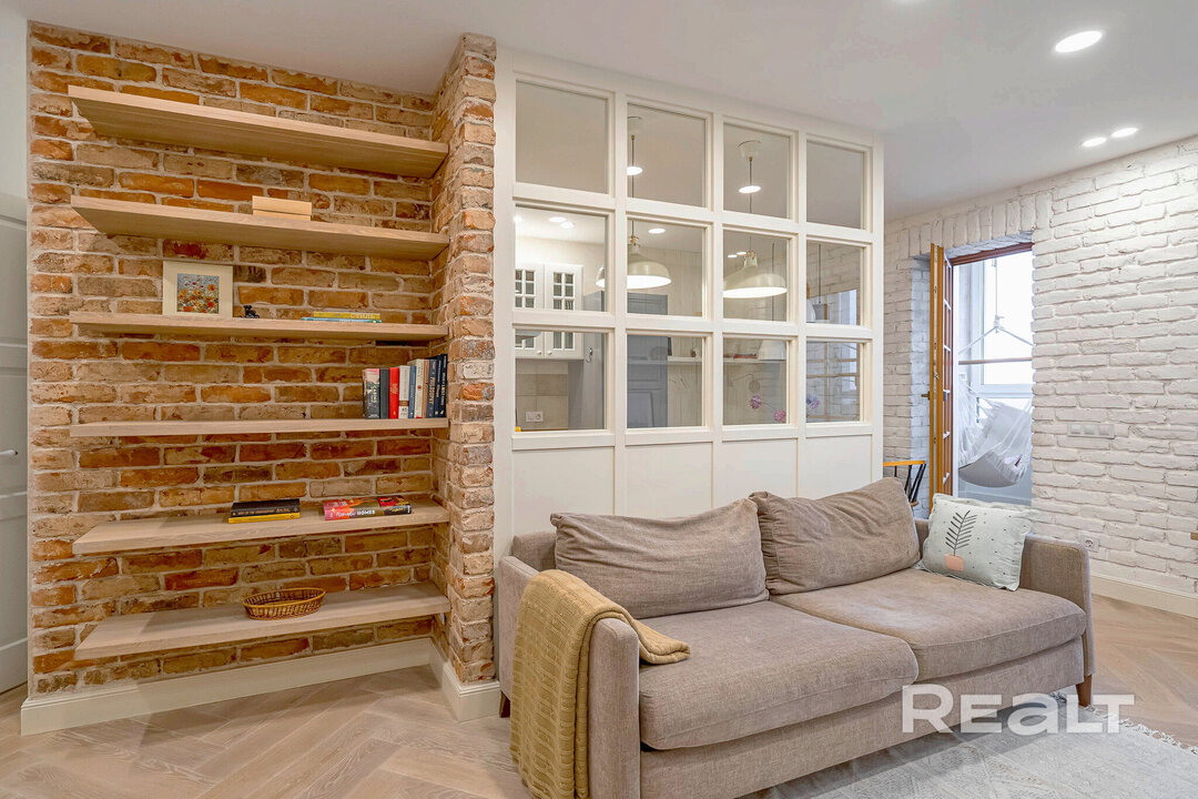В интерьере — кирпичи 19 века, а за окном — Дрозды. Посмотрите, какая интересная квартира продается в Минске