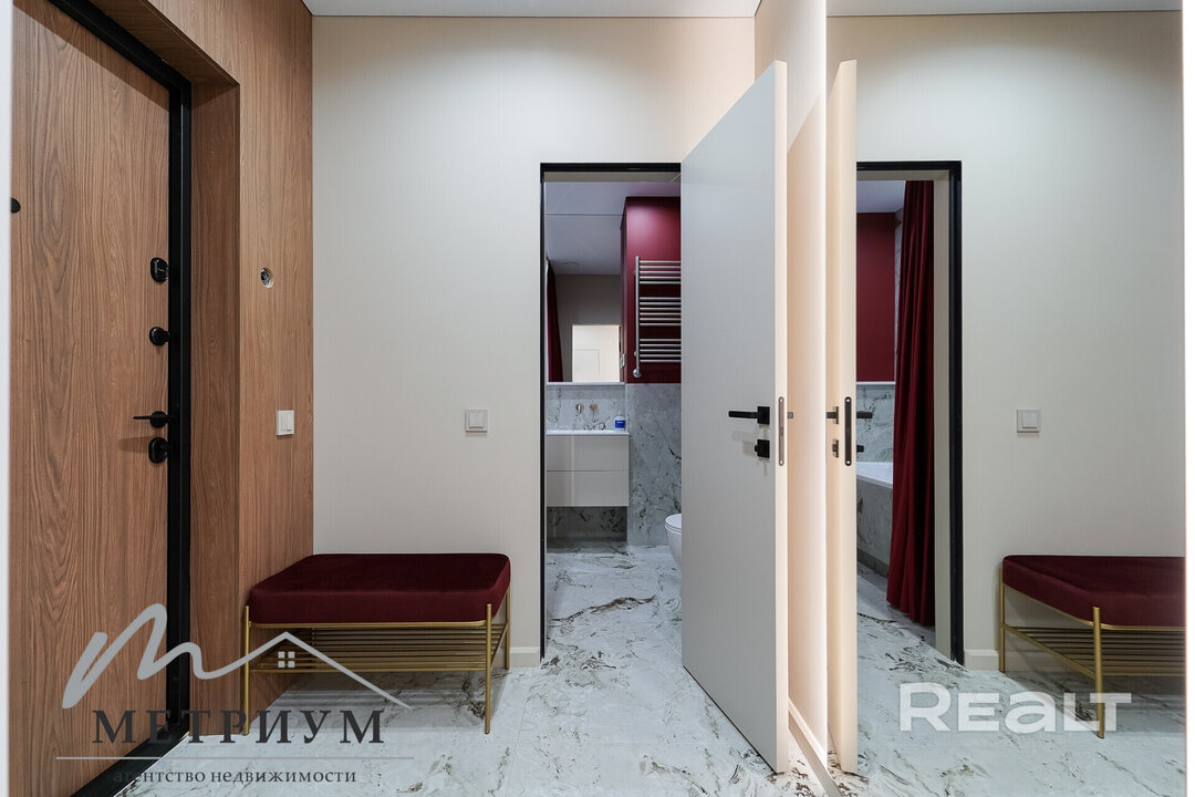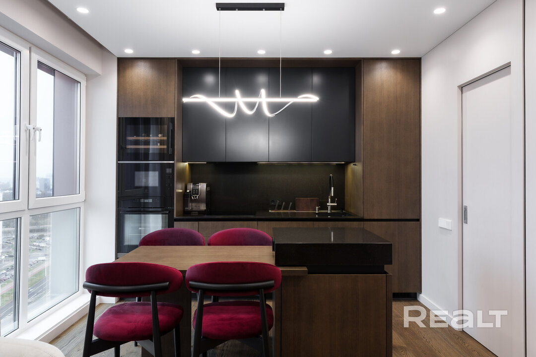 Покажем вам и самое дорогое жилье в квартале. Это — двухуровневая квартира с ремонтом, мебелью и техникой. Жилье площадью около 90 квадратов расположено на 19-м и 20-м этажах. С лоджии можно наблюдать красивые закаты! В квартире — высокие потолки и продуманная планировка. На первом этаже расположилась просторная гостиная с кухонным оборудованием, хозяйская спальня с лоджией, санузел с душевой. На втором этаже можно найти две спальни с лоджией, кабинет и санузел с ванной. В стоимость входит два парковочных места с зарядкой для электромобиля в крытом паркинге. Стоит двухэтажная квартира 390 тысяч долларов (4276 долларов — за метр).