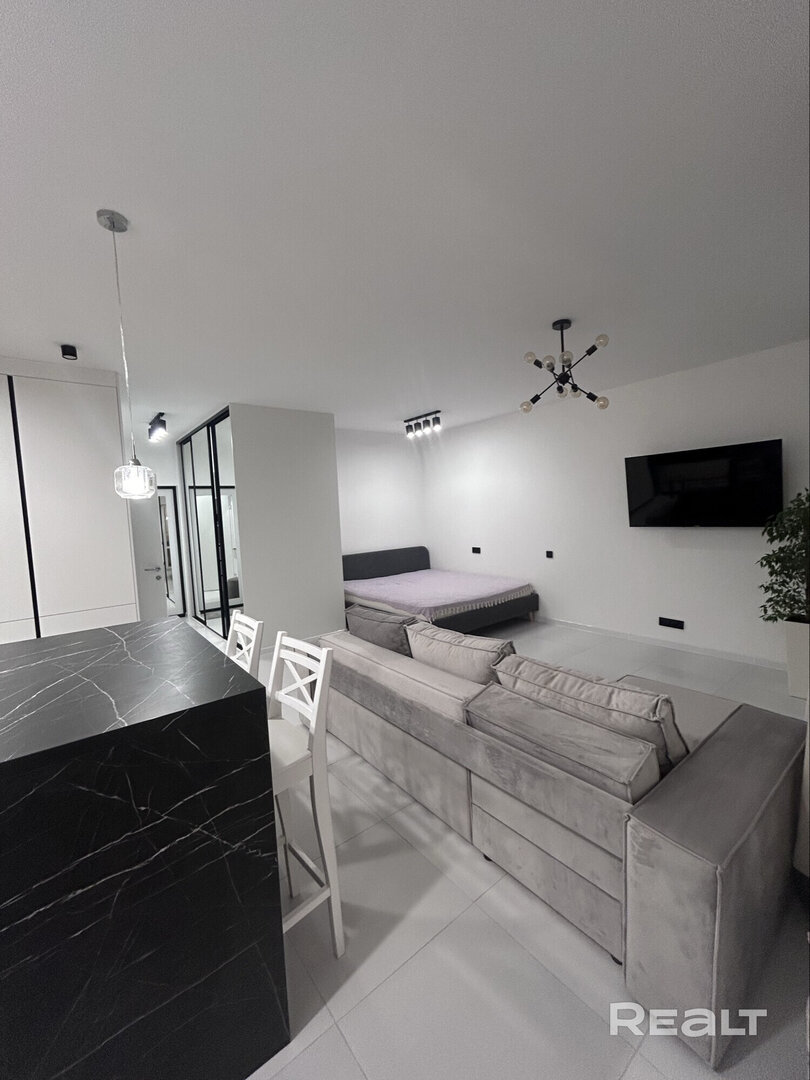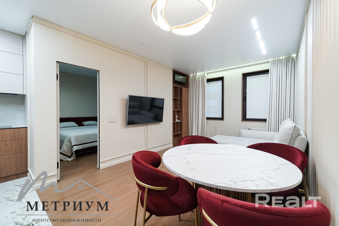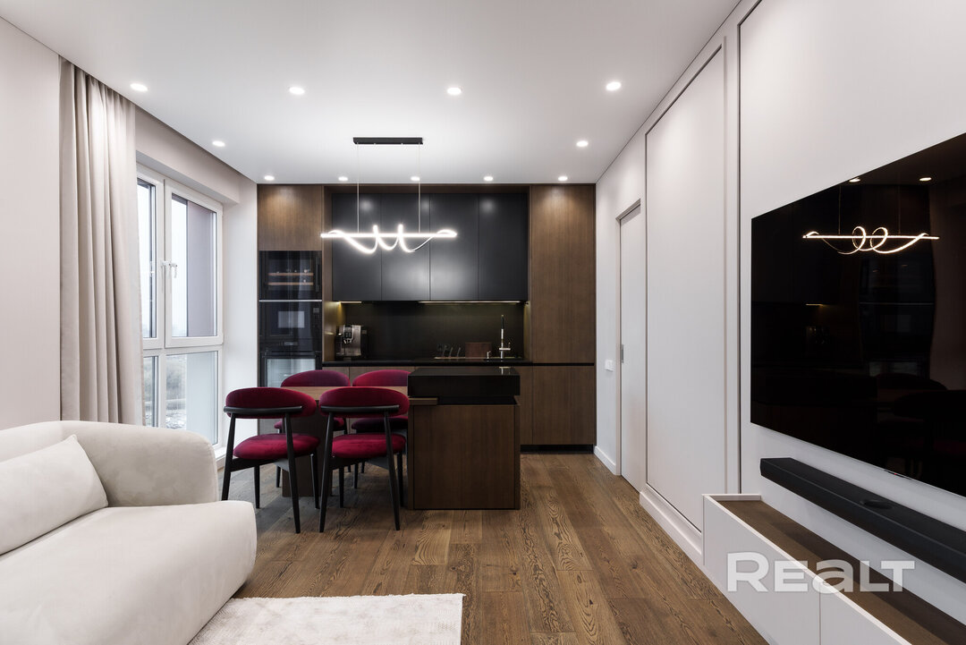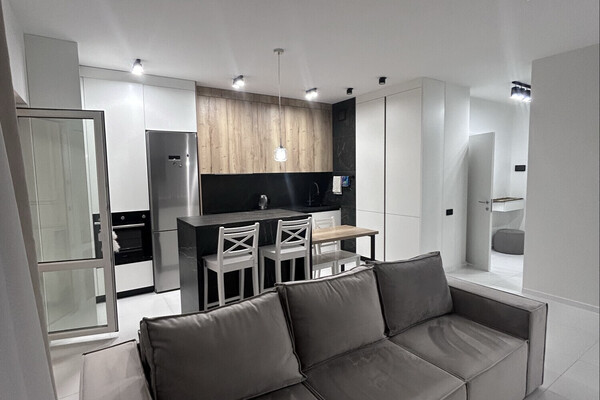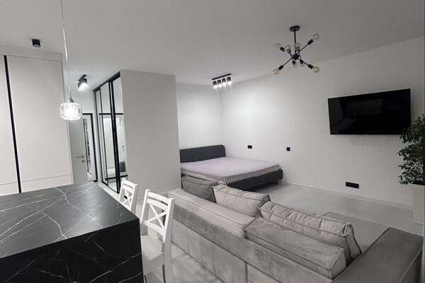 Готовые варианты с ремонтом здесь также есть. К примеру, самое экономичное предложение — однокомнатная квартира с кухней, мебелью и техникой. Площадь этого жилья составляет 45 квадратов. Квартира располагается на четвертом этаже. Пространство в единственной комнате собственник оставил открытым, но поделил на функциональные зоны. Продают квартиру за 135 тысяч долларов (2967 долларов — за метр).