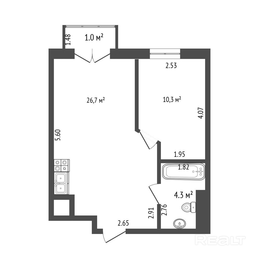 Квартира расположилась в доме по улице Цвирко, 82 — это семиэтажная новостройка 2024 года постройки. Жилье продается на третьем этаже. Евродвушка занимает 42,3 м².