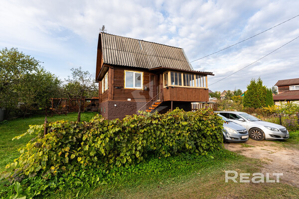 Дача продается в СТ «Родник-1982». Ее построили из бревен в два этажа в 1985 году. Дом стоит на бетонном фундаменте, перекрытия между цоколем и жилой частью — железобетонные плиты, на крыше лежит шифер. Площадь дачи — 70,4 квадрата.