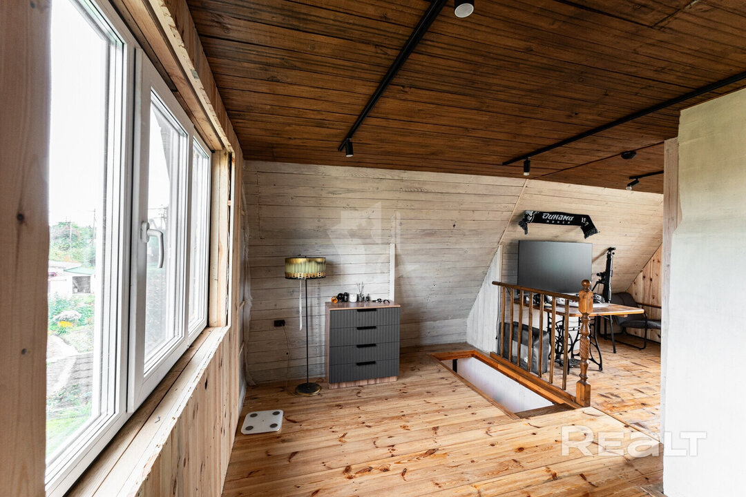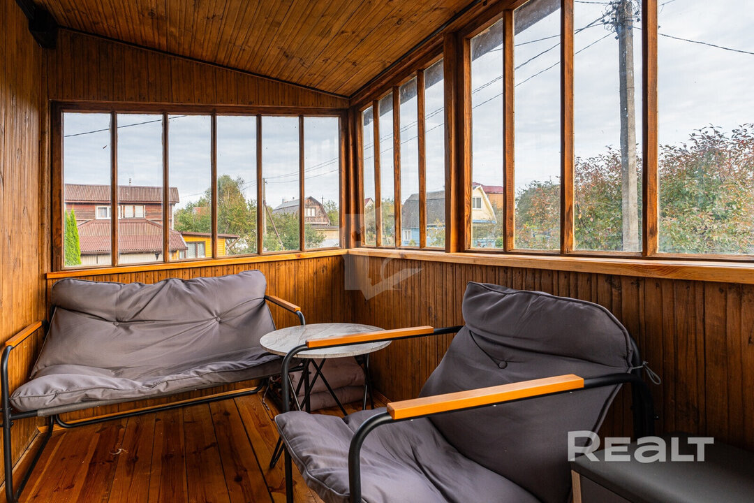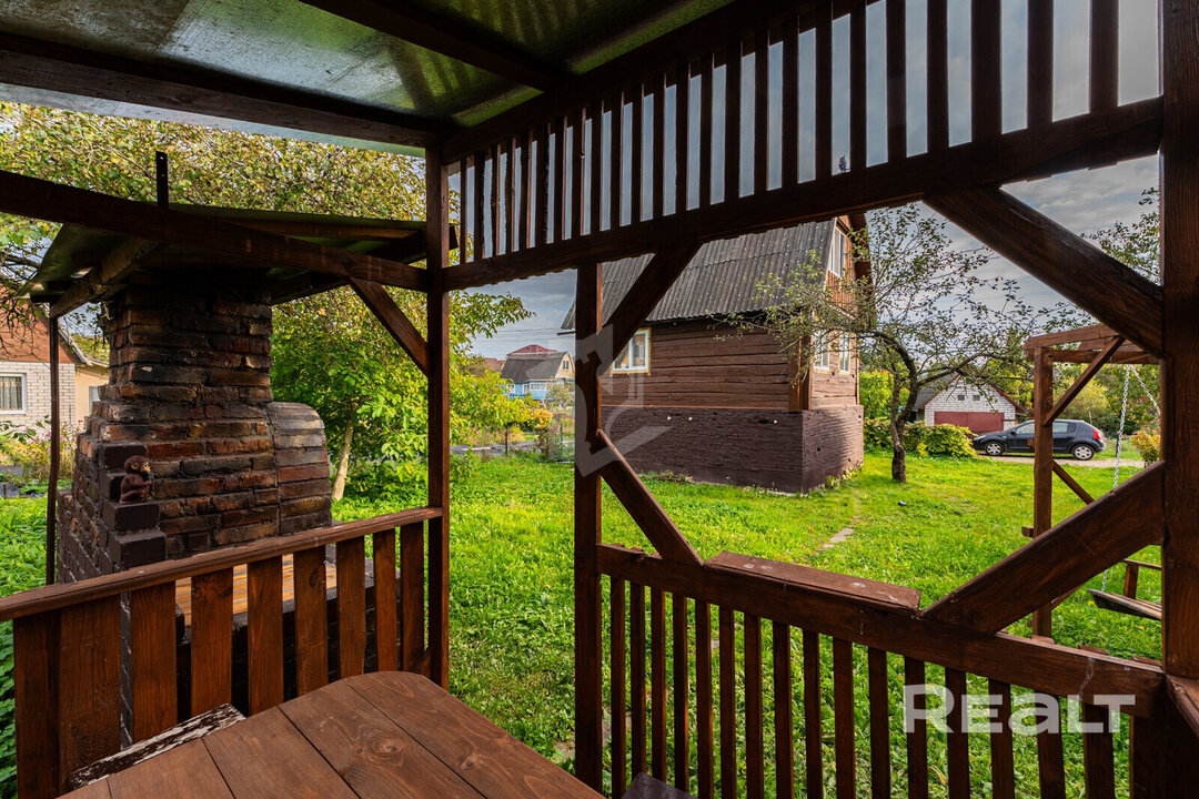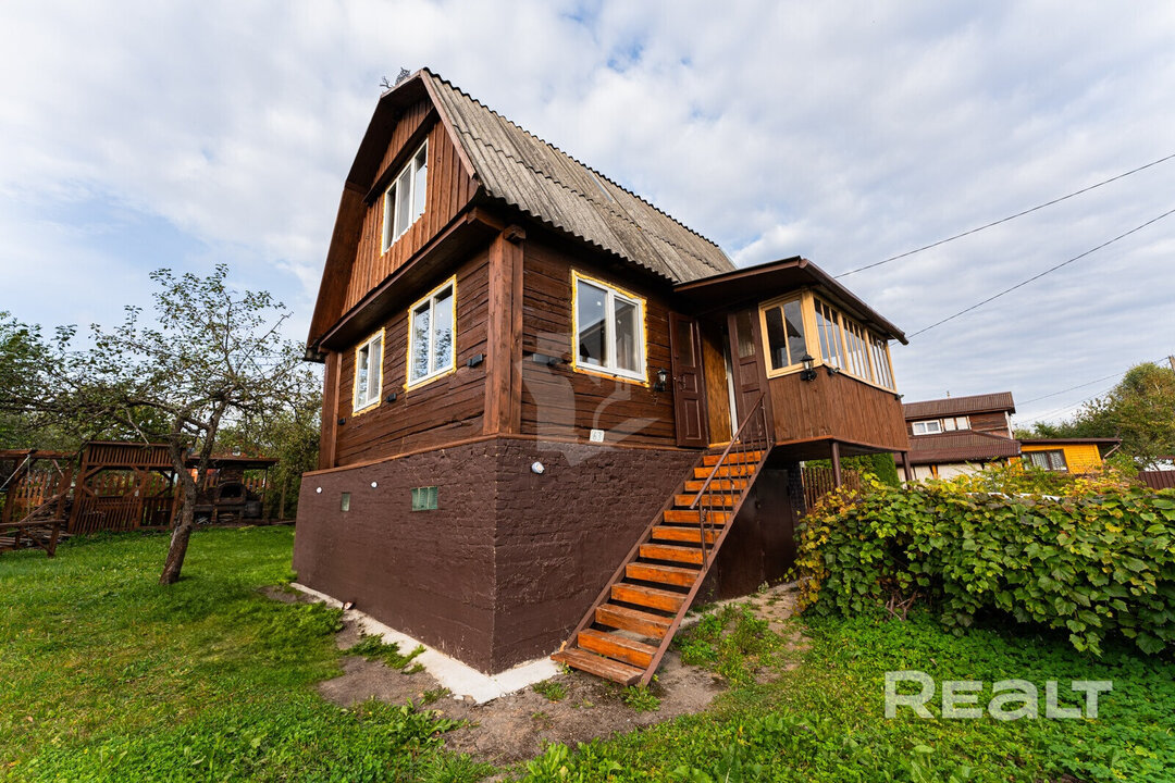 Дача продается в СТ «Родник-1982». Ее построили из бревен в два этажа в 1985 году. Дом стоит на бетонном фундаменте, перекрытия между цоколем и жилой частью — железобетонные плиты, на крыше лежит шифер. Площадь дачи — 70,4 квадрата.