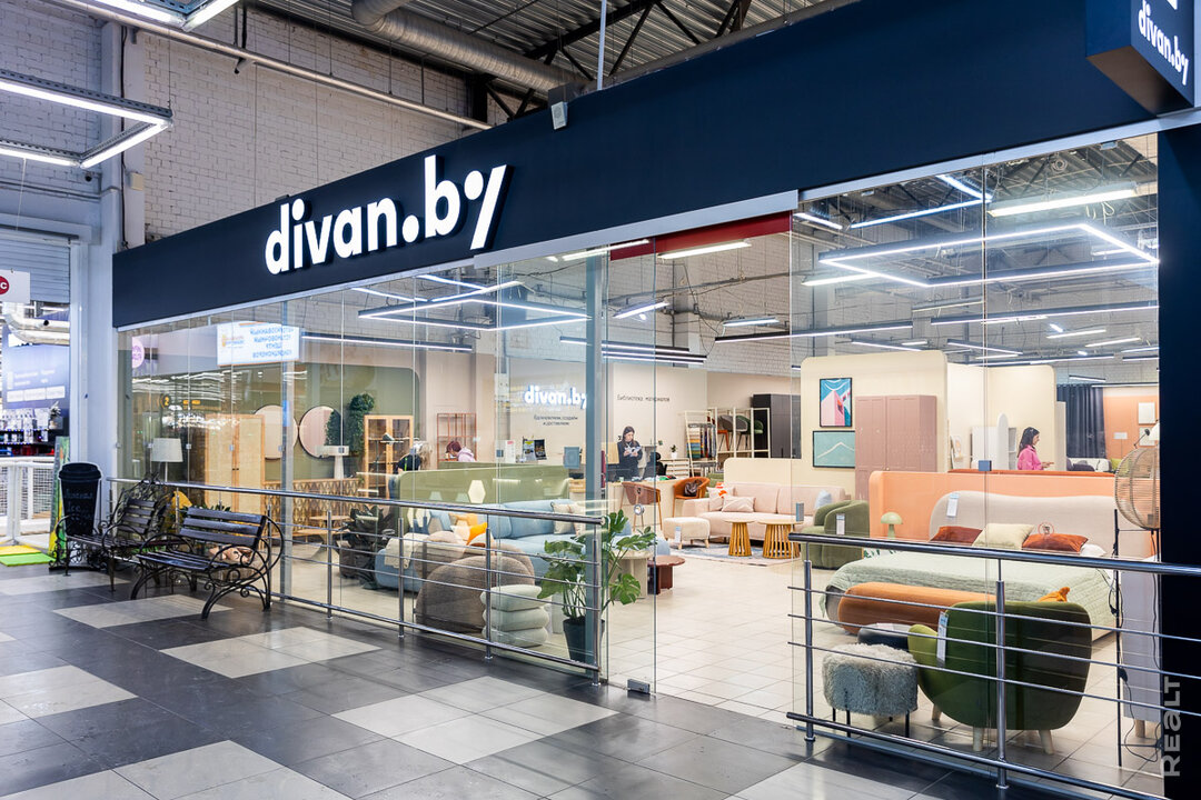 Не будем томить: давайте смотреть ассортимент! В шоурум Divan.by легко попасть с любого из входов в торговый центр, вывеска на витрине уже светится и громко заявляет о себе. На старте встречает консультант. Здесь готовы рассказывать подробно и отвечать на все-все вопросы, чтобы помочь с выбором нужной модели.