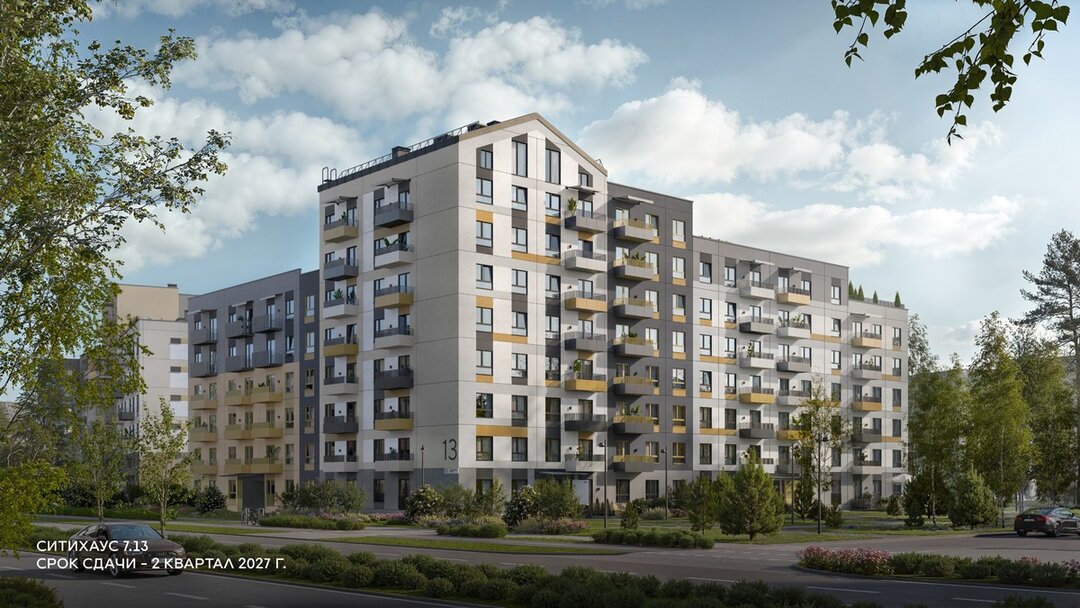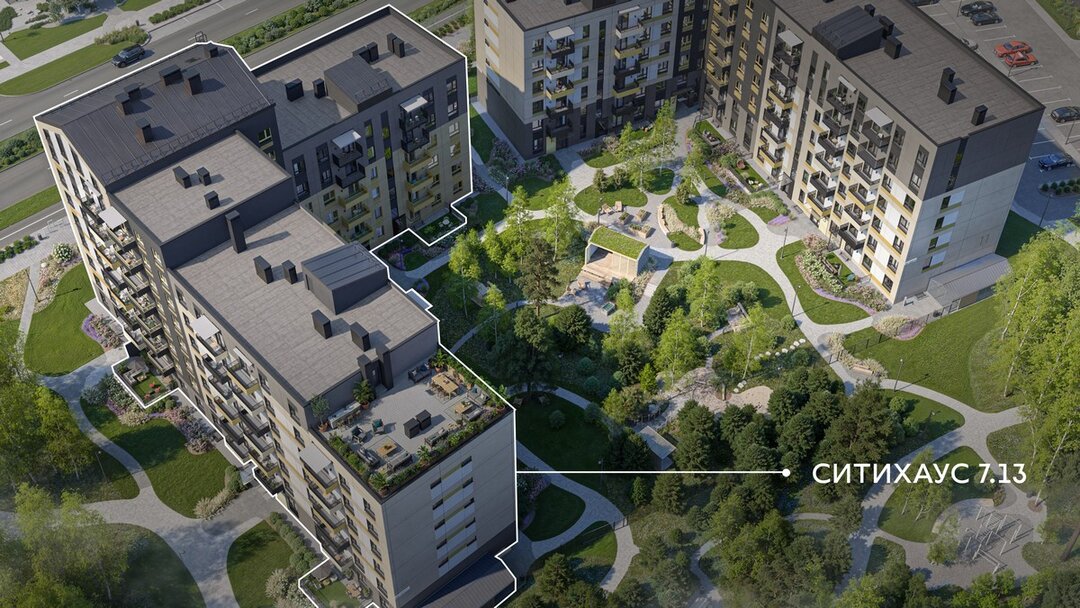 Дом 7.13 по генплану появится в квартале Земляничная поляна — в пешей доступности от магазинов, аптеки и кафе, а рядом расположится лесной пляж и спортивной площадкой.