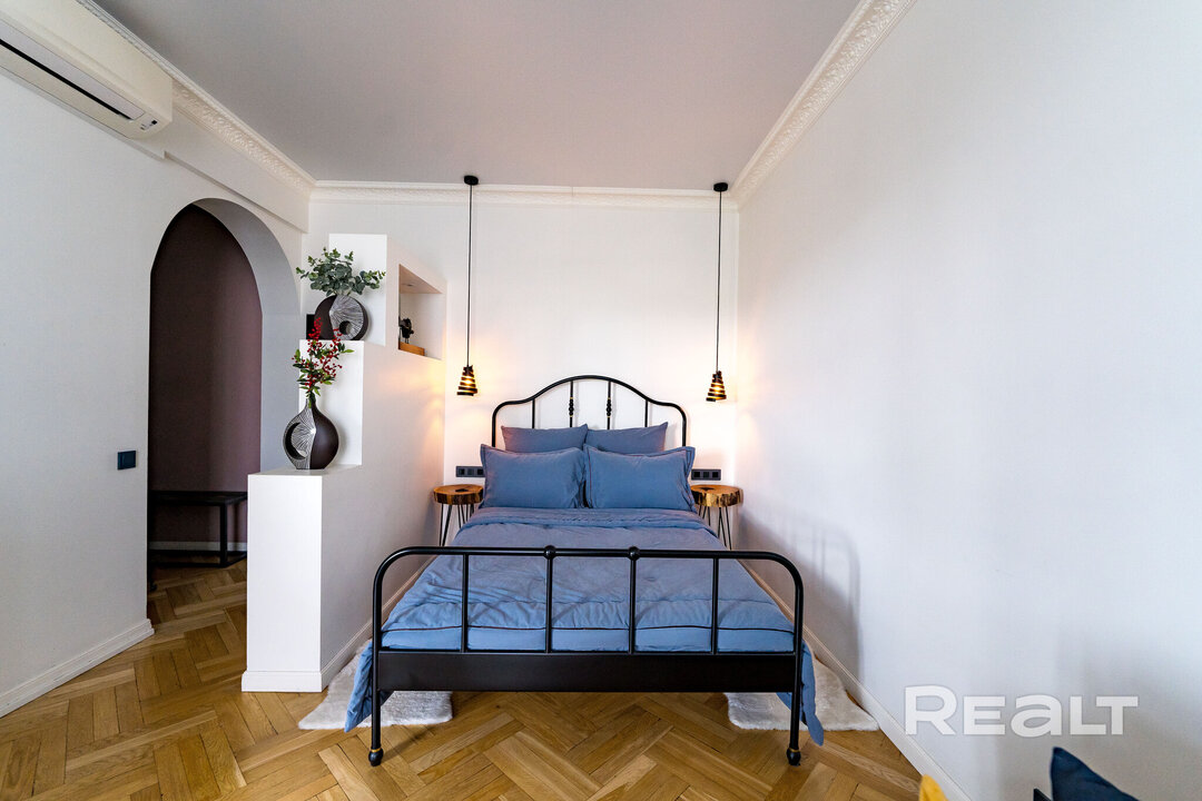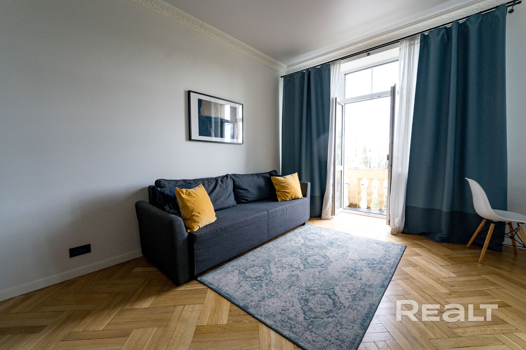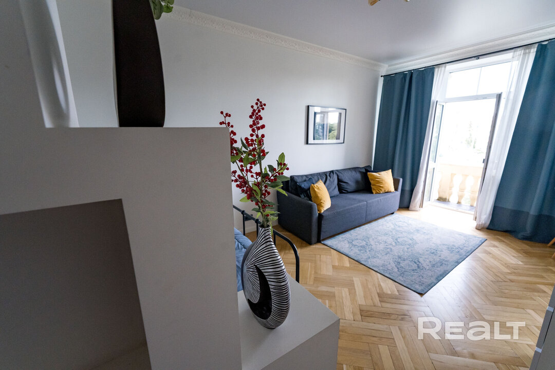 5661На Realt появилась в продаже однокомнатная квартира с видом на Вечный огонь. Это квартира, в которой сочетается аутентичность сталинки и стильный современный ремонт. Сейчас квартиру сдают на сутки, говорит продавец. Посмотрим этот вариант.