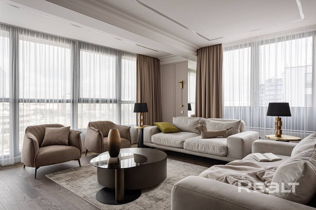 № 1. На первом месте очень интересная по стилистике (и не только) квартира на пр-те Независимости 85\б: 200 кв.м., 3 комнаты, оригинальный ремонт и огромная терраса. Стоимость квартиры за прошлую неделю выросла на 20 000 $ до 370 000 $ или 1 850 $ за метр.