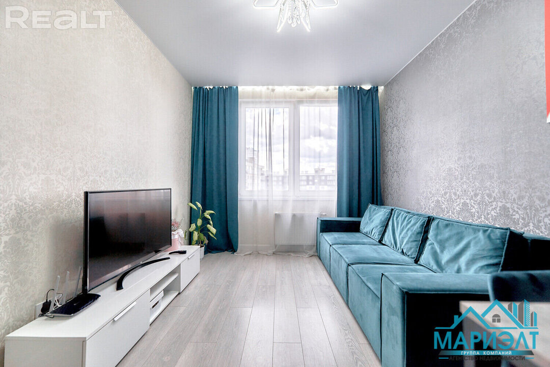 Заканчиваем евродвушкой в ЖК «Маяк Минска». Квартира находится на восьмом этаже десятиэтажного дома 2018 года постройки по адресу Туровского, 24.