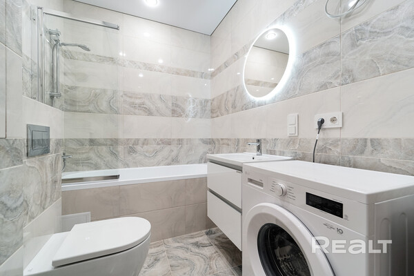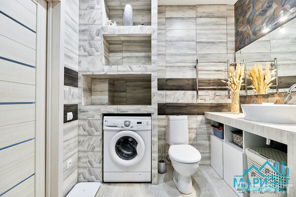 Ремонт в квартире выполнен по дизайн-проекту, интерьер в бежевых оттенках. Встроенная мебель выполнена на заказ из МДФ. В кухне из техники есть индукционная варочная панель, духовой шкаф, встроенный холодильник, посудомоечная машина, вытяжка и микроволновая печь. В спальне выход на остекленную лоджию. В совмещенном санузле установлена ванна.