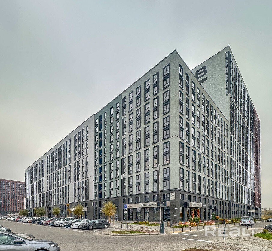 Евродвушка в жилом комплексе «Северный Берег», на первой береговой линии Цнянского водохранилища. Это дом «Паркленд 2» по адресу Виталия Цвирко, 80. В нем шесть этажей, квартира находится на пятом.
