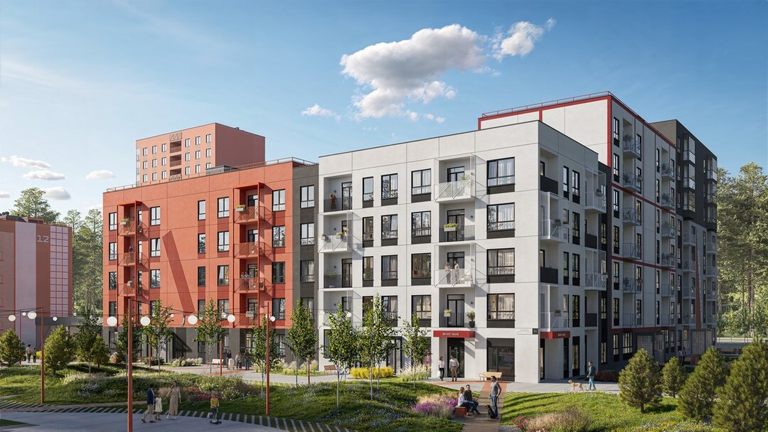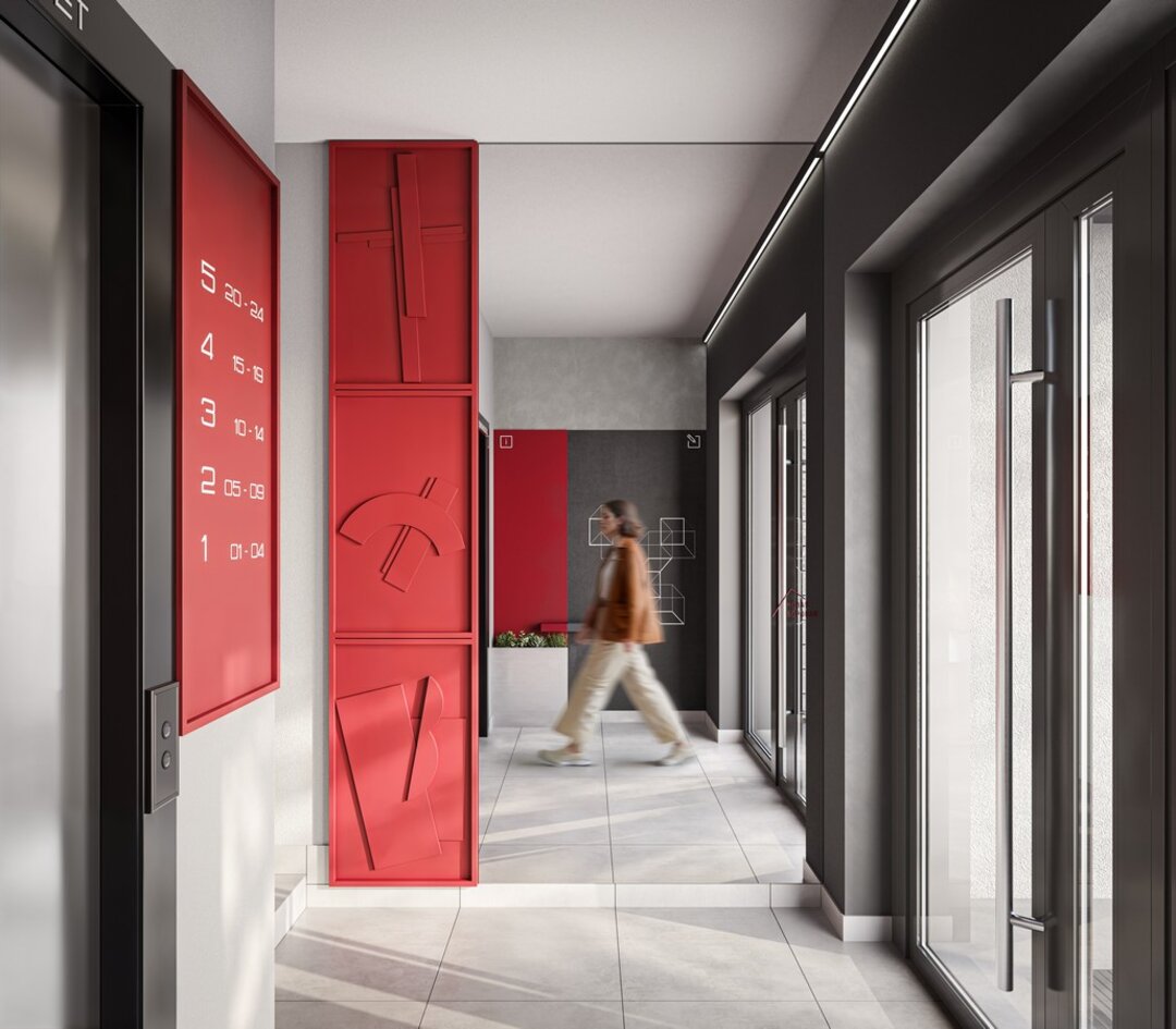 Дом в стиле конструктивизма будет выделяться разноэтажным объемом, контрастными цветами и фасадной графикой. Всего в доме будет 98 квартир разных форматов, в том числе студии площадью 27−28 квадратов. Их дополняют квартиры евроформата с двумя, тремя и четырьмя жилыми комнатами. Предусмотрена и единственная в доме пятикомнатная 95-метровая квартира.