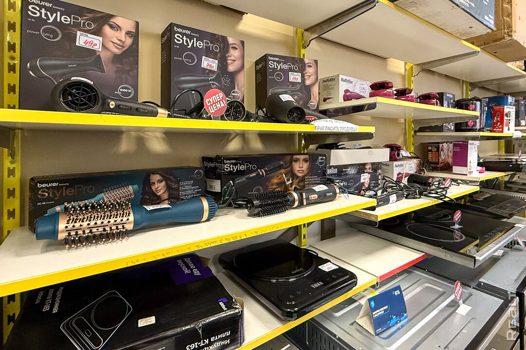 Из брендов бытовой техники в магазине представлены Bosch, Gorenje, LG, Samsung, Siemens, Haier и другие. Некоторые товары разбирают быстро, а есть и те, что остаются в продаже надолго. Так, например, мы увидели ту же сушильную машину Candy, что продавалась в прошлом году. Тогда ее стоимость была 1 995 рублей, а сейчас — 1 869 рублей.