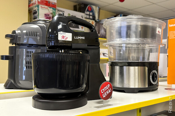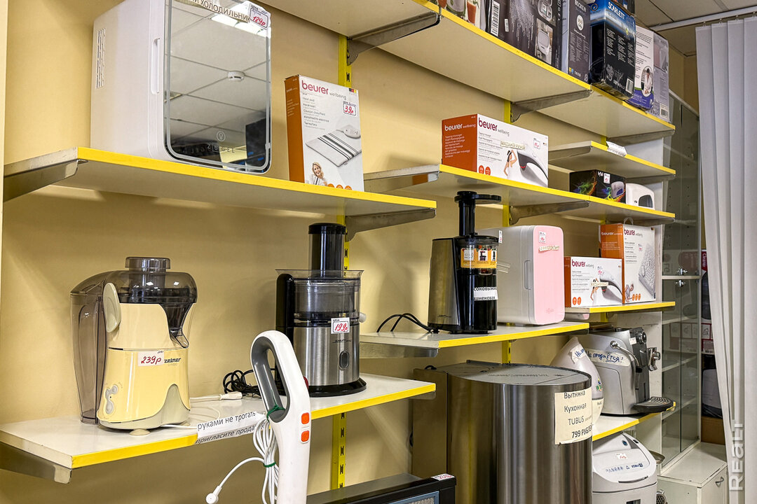 Мелкая бытовая техника в магазине тоже продается. Здесь есть пылесосы — вертикальные и роботы, утюги и паровые станции, кофе-машины и компактные электроплитки, блендеры, миксеры и кухонные комбайны. А еще есть кондиционеры и вытяжки.