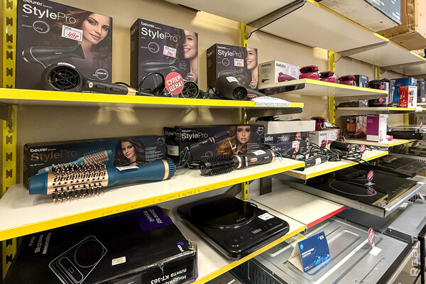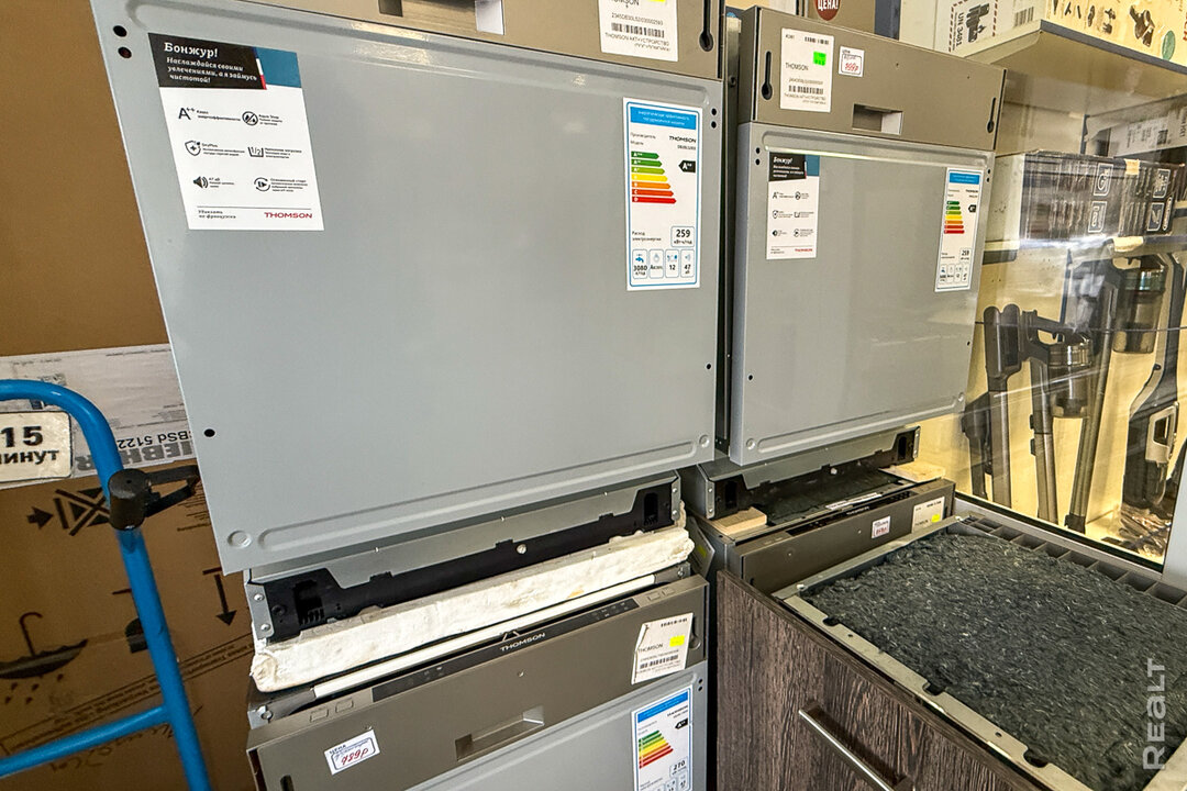 В магазине появилось много товаров французского бренда Thomson. К примеру, духовой шкаф этого бренда с витрины можно купить за 989 рублей вместо 2 тысяч рублей, а встраиваемые посудомоечные машины стоят от 620 рублей. Духовой шкаф словенского бренда Gorenje стоит 1 619 рублей. В интернет-магазинах эта модель сейчас продается на тысячу рублей дороже. Скидка — из-за того, что образец витринный.