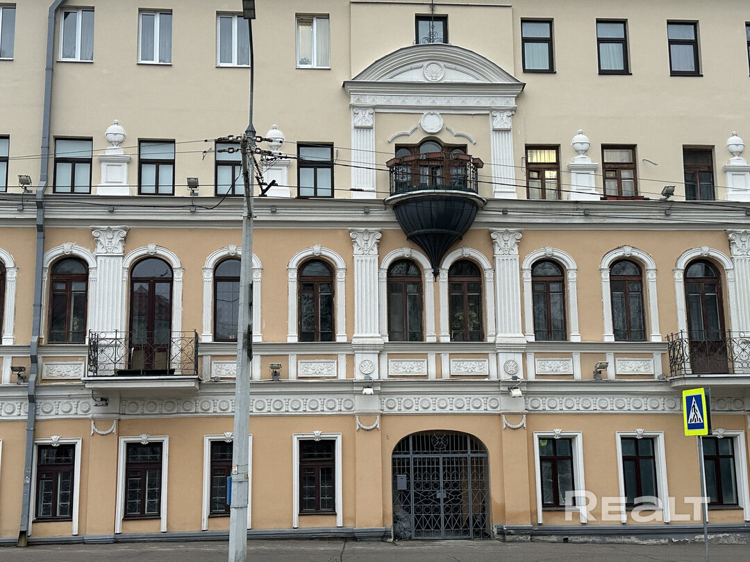 Про этот дом на Мясникова, 76 мы рассказывали не раз: сто лет назад здесь жил писатель Янка Мавр, а луковичный балкон и сейчас привлекает внимание минчан. Сейчас в этом доме на втором этаже появилась в продаже однушка с современным ремонтом.