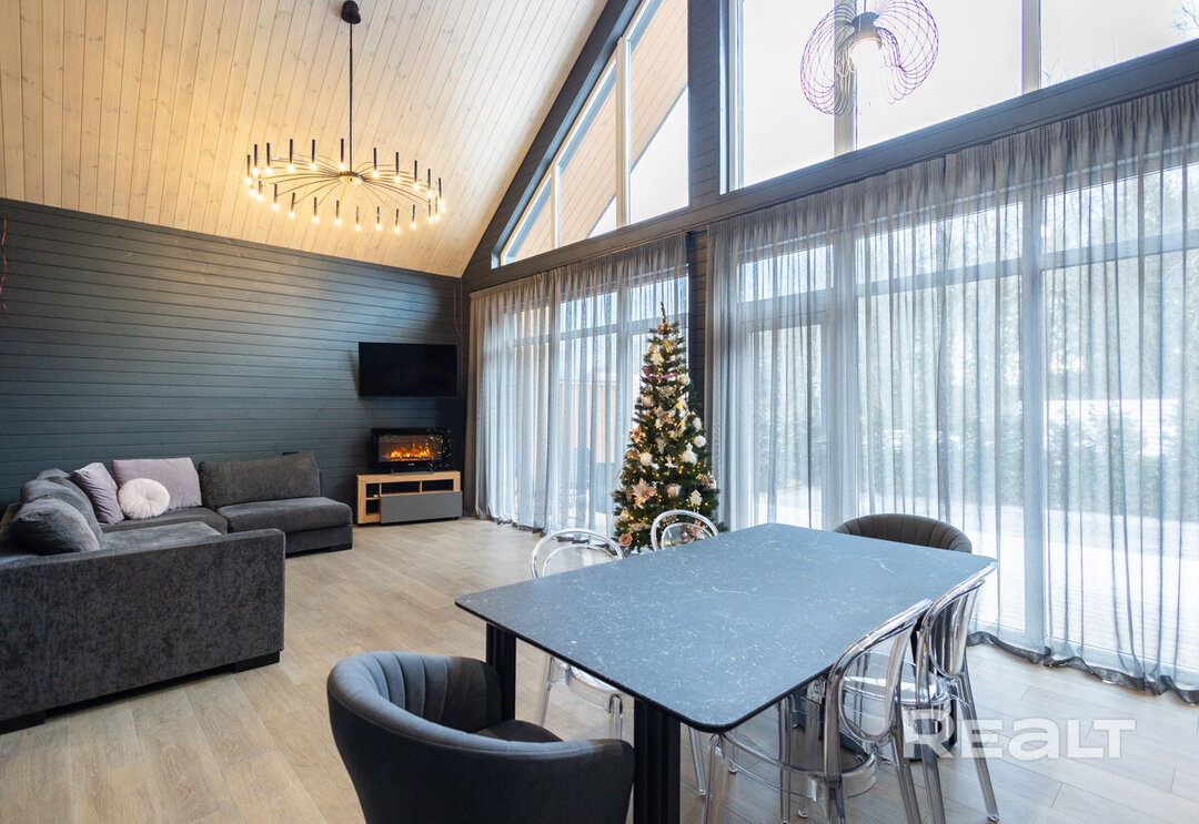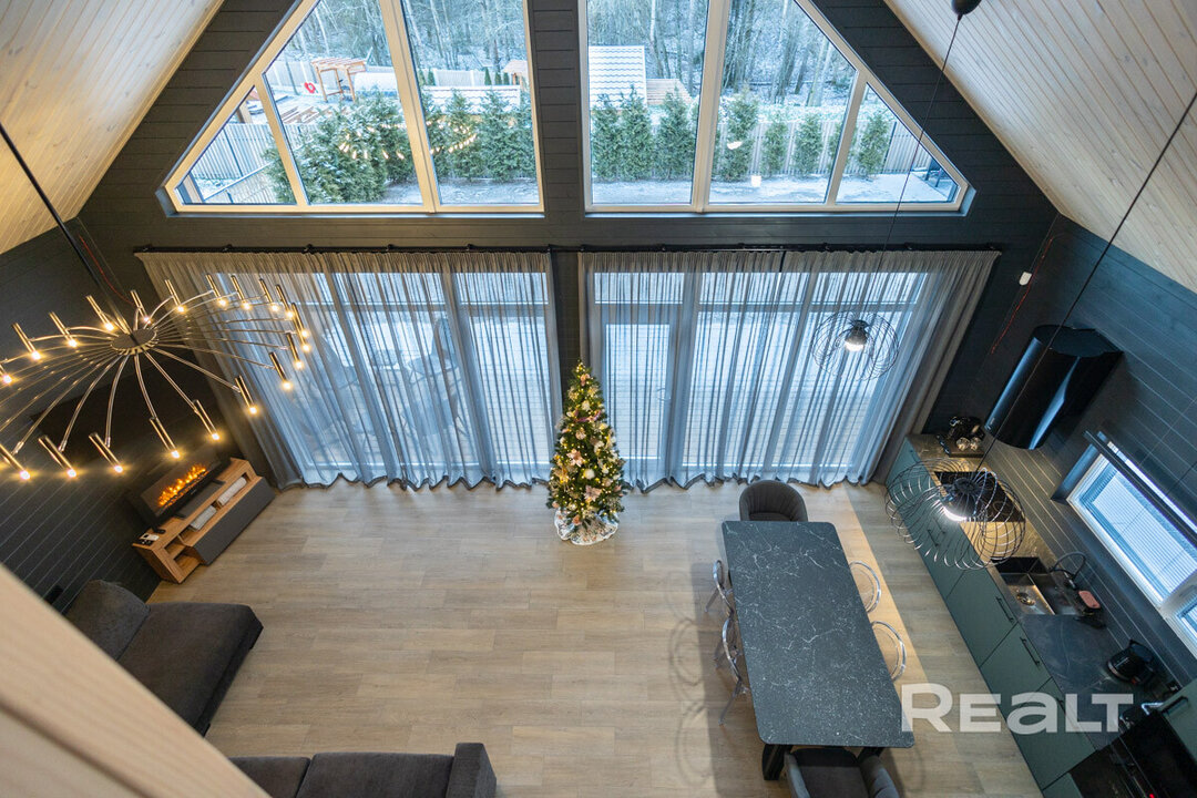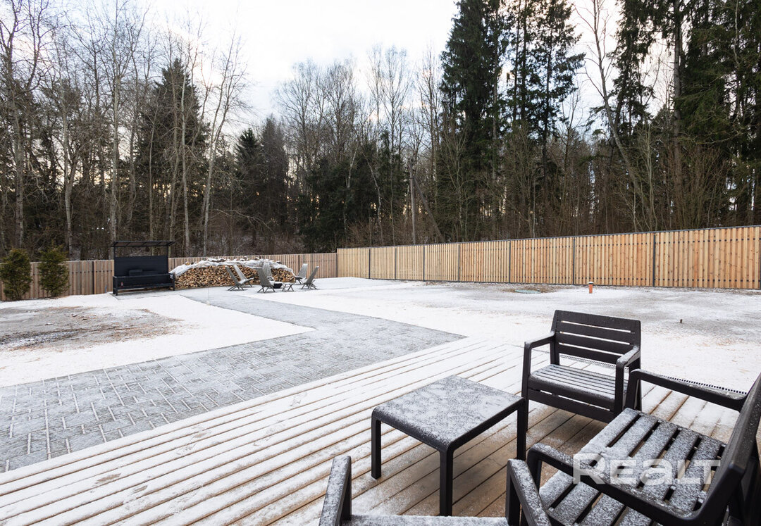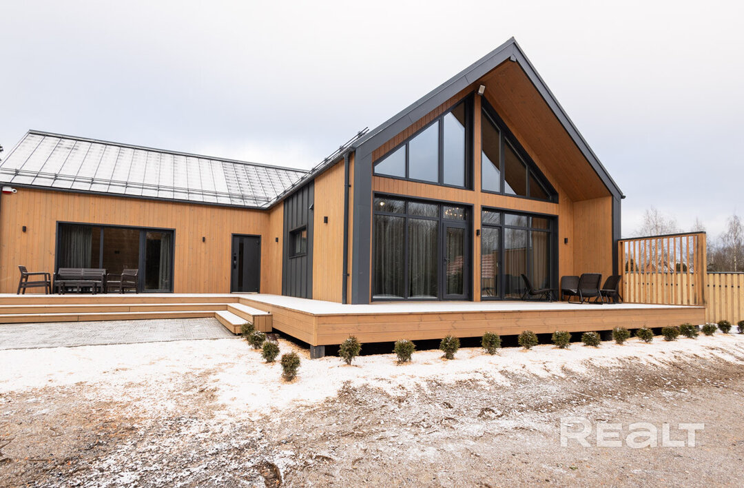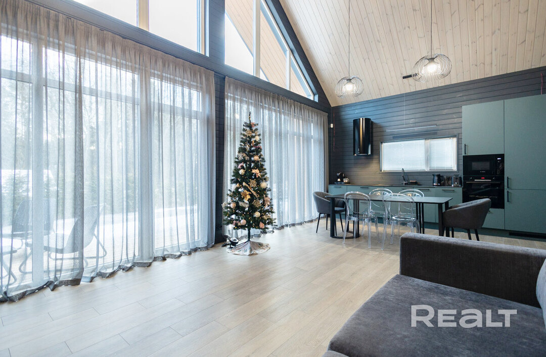 Этот объект расположен в 29 километрах от Минска, 20−25 минут на машине до МКАД. Но главное преимущество локации — близость к крупнейшим горнолыжным комплексам в Силичах и Логойске. До них — 5−10 минут езды. Статус у поселка дачный (это СТ «Зеленый Сад»), но многие дома здесь построены для круглогодичного проживания. Наш объект можно рассматривать и как резиденцию горнолыжника, и как загородное жилье в «белорусской Швейцарии».