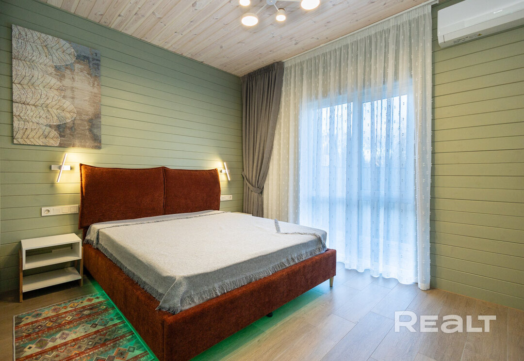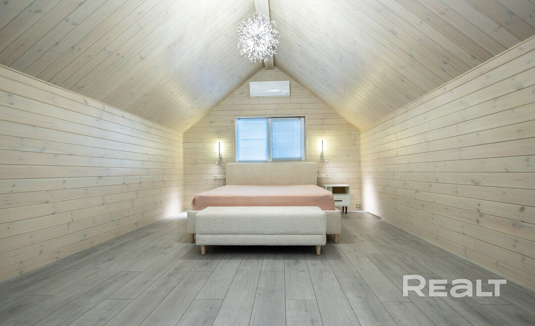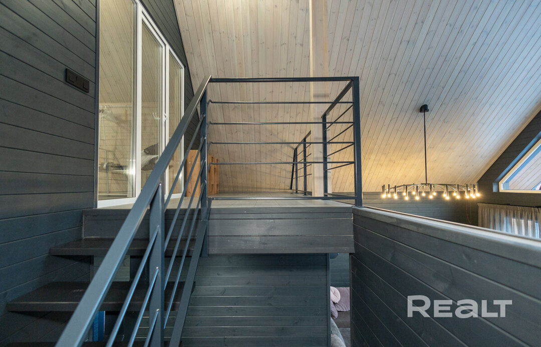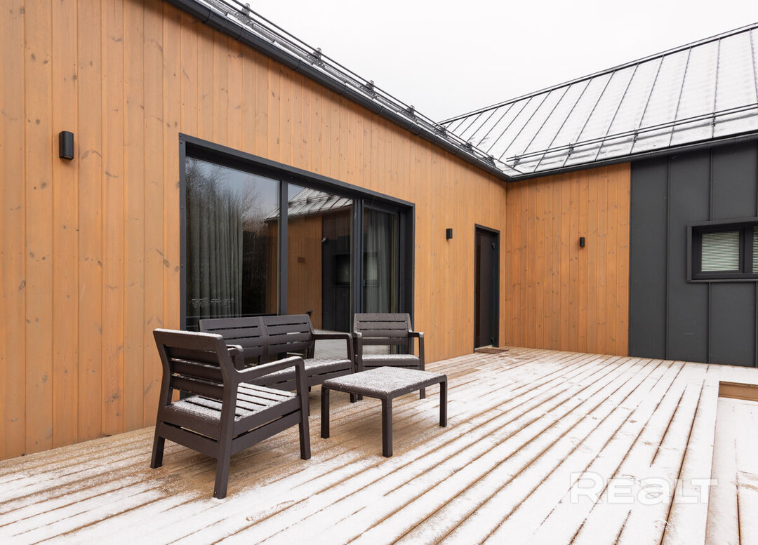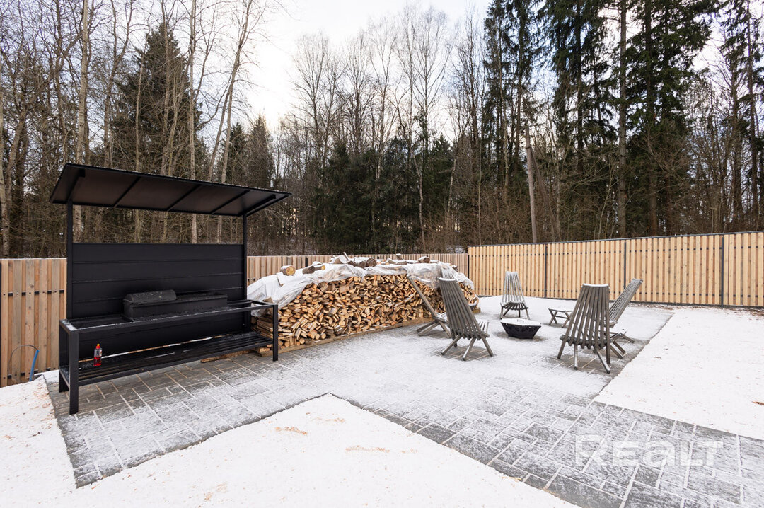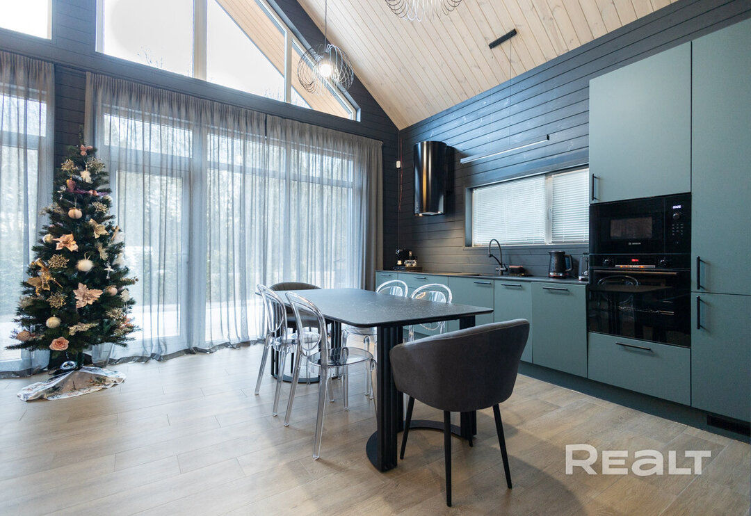 Этот объект расположен в 29 километрах от Минска, 20−25 минут на машине до МКАД. Но главное преимущество локации — близость к крупнейшим горнолыжным комплексам в Силичах и Логойске. До них — 5−10 минут езды. Статус у поселка дачный (это СТ «Зеленый Сад»), но многие дома здесь построены для круглогодичного проживания. Наш объект можно рассматривать и как резиденцию горнолыжника, и как загородное жилье в «белорусской Швейцарии».