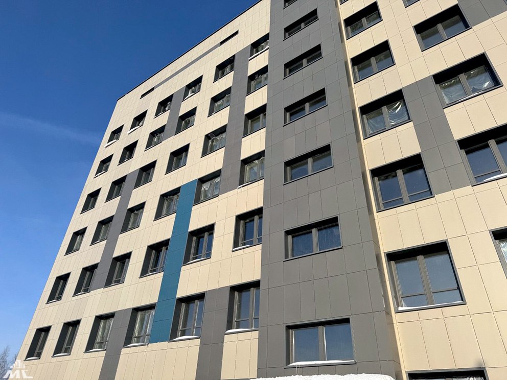 — Укладывается плитка в помещениях и местах общего пользования, ведется оштукатуривание, шпатлевка, окрашивание поверхностей. Устанавливаются двери, столяры монтируют ручки. Высвобождается фронт работ для сантехников, и они приступают к установке сантехпосуды. Начался монтаж конструкций подвесных потолков, — рассказывает детали «Минскстрой».