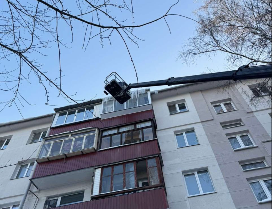 Коммунальщики показали, как убирают снег с крыш жилых домов. Вот фото