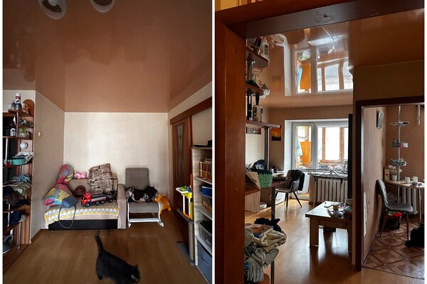 Свое первое жилье — двухкомнатную квартиру на Калинина в хрущевке 1962 года молодая пара купила 5 лет назад. Обновлять ее они не спешили, так как впереди дом ждал капремонт. К моменту знакомства с дизайнером Ириной, у ребят уже появился ребенок и кошка. Вместе с ними жил и брат хозяйки квартиры. В компактной двушке в 42 квадрата такому количеству человек тяжело найти место для уединения. Семья с малышом жила в отельной комнате, а молодой человек занимал проходную гостиную.
