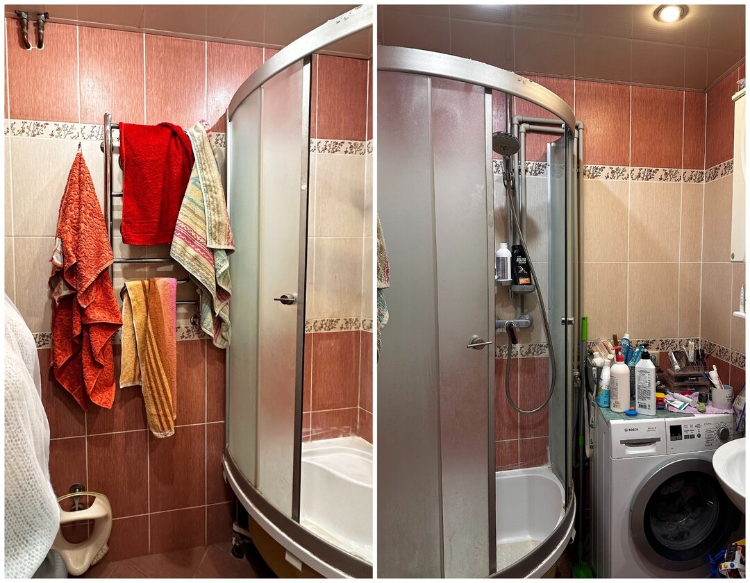 Не было тут и полноценной обеденной зоны, удобного санузла. Вместо этого барная стойка и протекающий душ. Не хватало мест для хранения, не говоря уже про лоток для кошки. Понятно было одно, что изменений требует не только интерьер квартиры, но и планировка.