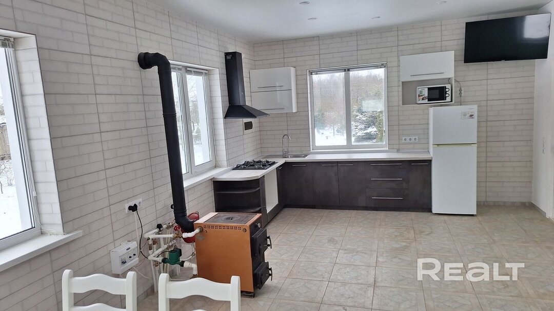 Дорога к дому займет минут 20 — от МКАД до поселка Селец всего 15 километров. Многого от него не ждите, но сюда ведет асфальтированная дорога и есть уличное освещение. Сюда ходит школьный автобус и маршрутка. Ближайшая городская инфраструктура со школами, поликлиникой и магазинами находится в 10 минутах, в Заславле. В поселке (не путать с одноименной деревней рядом) ищите дом с номером 24 — стоит на горке в самом конце улицы напротив водоема. Соседей почти нет, по границе с участком — небольшой лес.