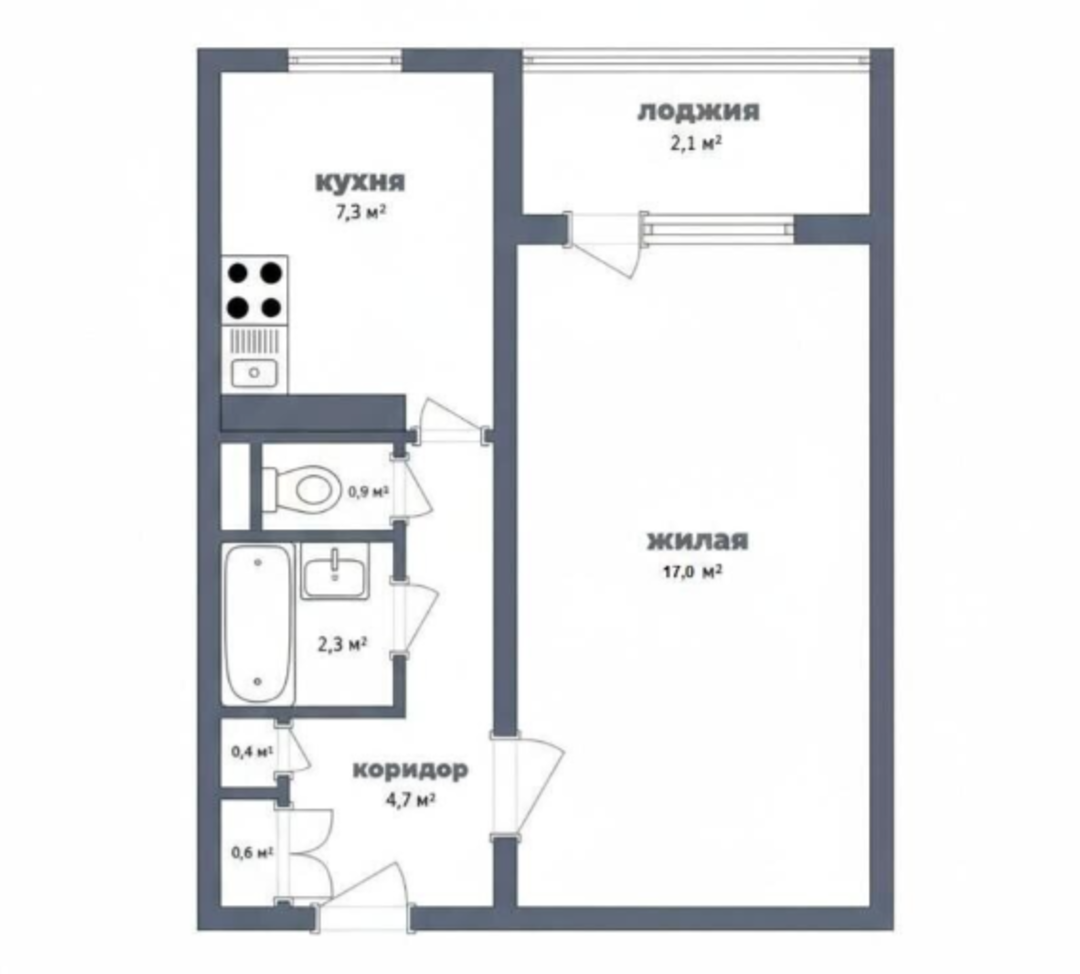 Эта однушка находится в девятиэтажном доме на Селицкого, 95. Здание построили в 1990 году. Квартира располагается на 6-м уровне и занимает 33,3 м². На кухню приходится 7,2 м².