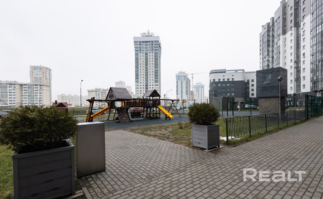 В непосредственной близости от дома находится водохранилище Дрозды, аквапарк «Лебяжий», велодорожка, спортивный комплекс Минск-арена и торговый центр «Арена-сити».
