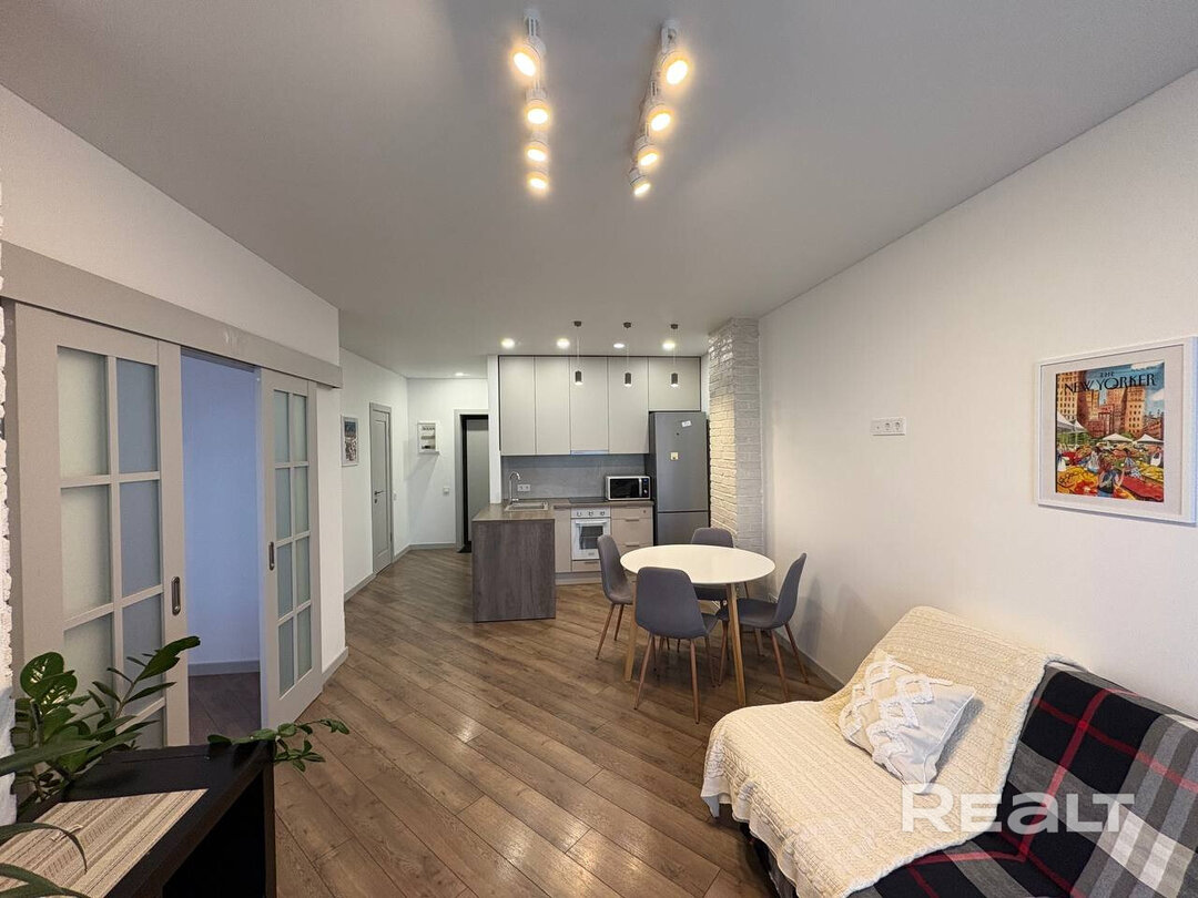 Есть в нашей подборке и вариант из Минск-Мира. Евродвушка на улице Игоря Лученка, 24. Это дом «Бали» в квартале «Тропическе острова». Дом построен в 2023 году, в нем 25 этажей. До метро меньше 900 метров.