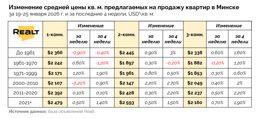 Цены растут при провале продаж. Что произошло на вторичке Минска за 19−25 января