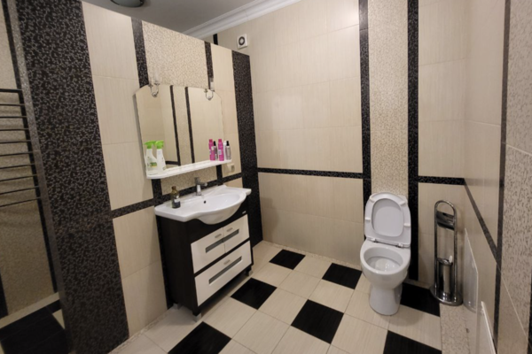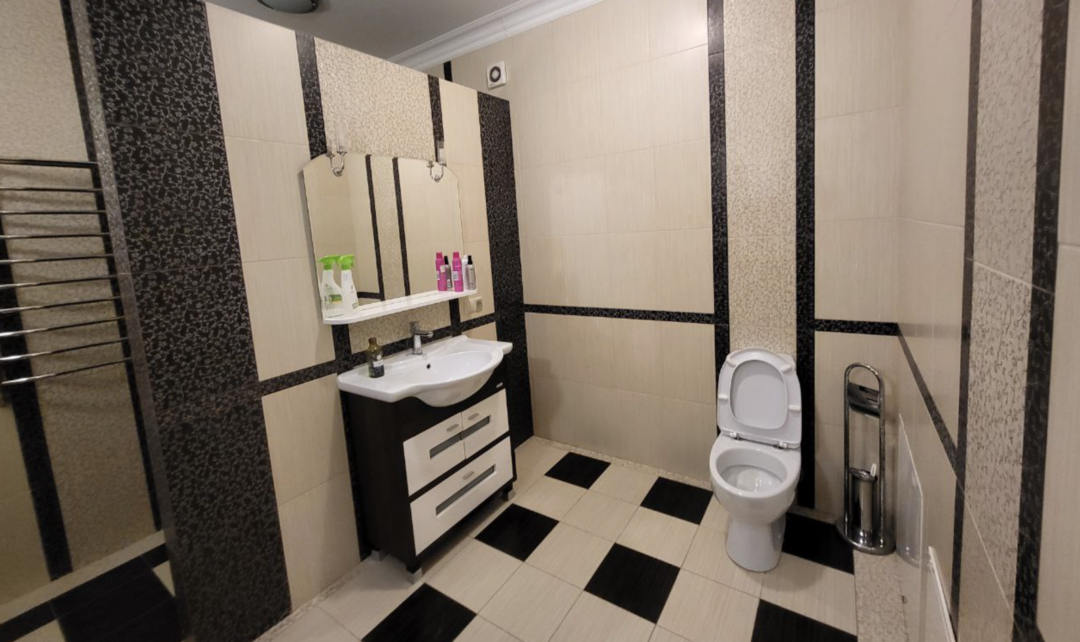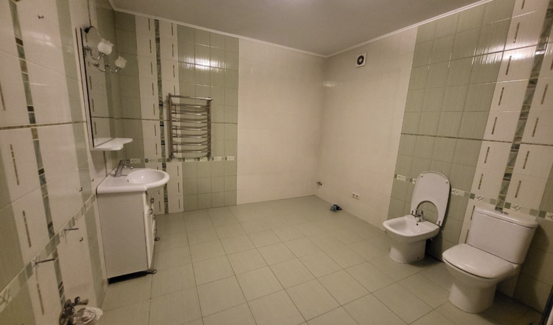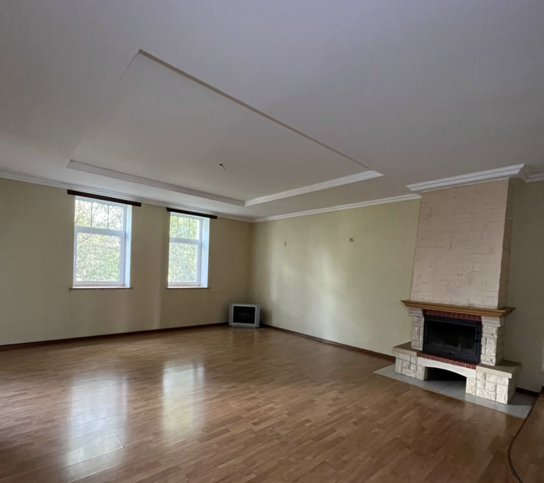 Дом блочный. Состоит из трех этажей — двух стандартный и мансардного, плюс есть подвал. Общая площадь дома — 312 квадратов. В доме два санузла и минимум мебели. Ремонт вот выглядит вот так.