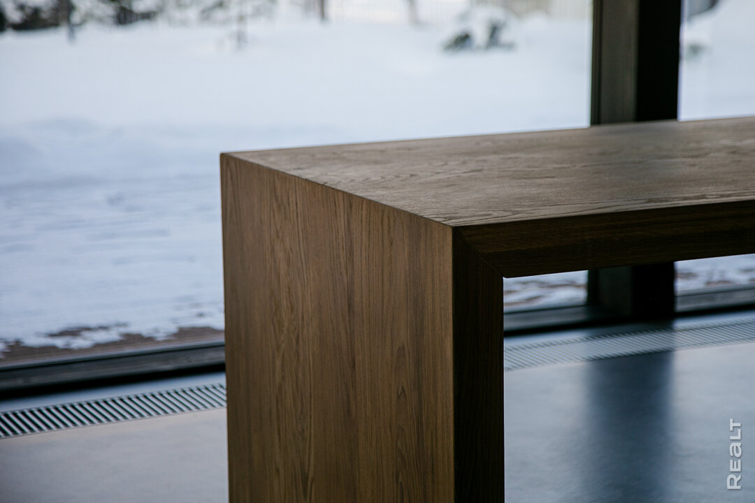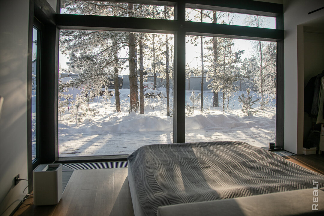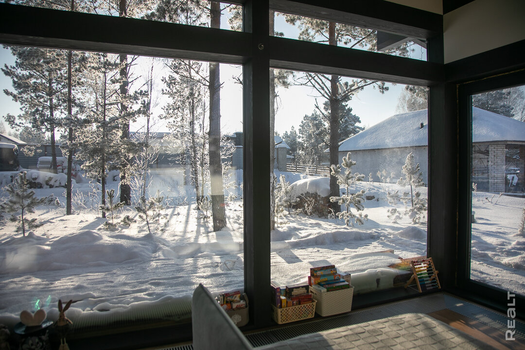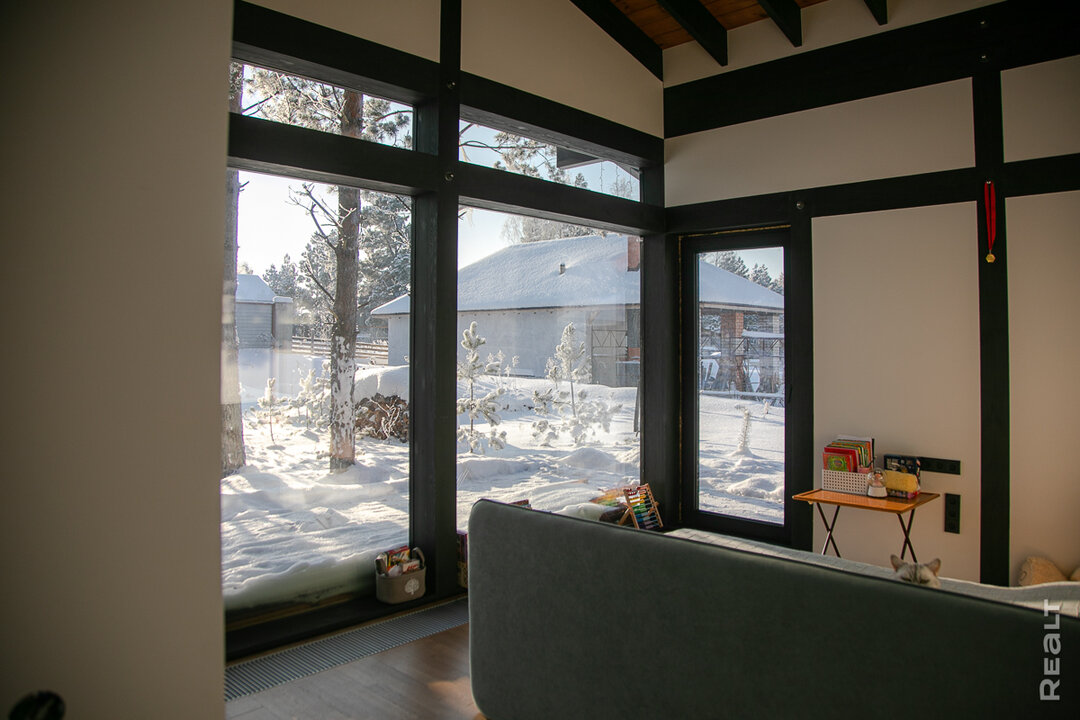 В доме Александра тепло, уютно и… непривычно. Удивительно находится в помещении, где стены прозрачные. Вот ты видишь снег на террасе, понимаешь, что там, за стеклом, минус 20, а тебе комфортно. Даже если подойти вплотную, холод не ощущается.