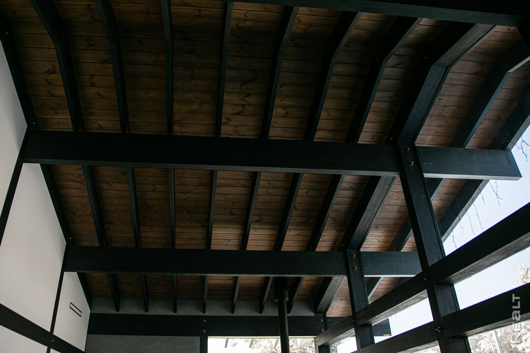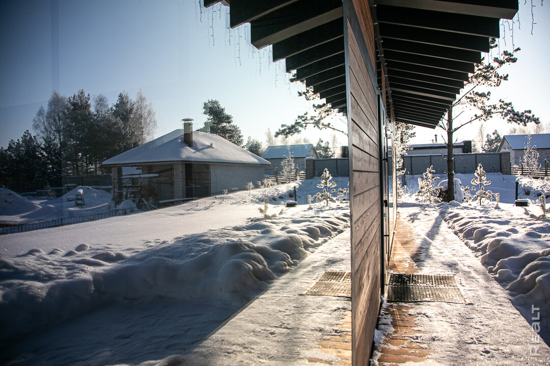 Александр, минский айтишник, задумал строить этот дом три года назад. Но не простой, а по технологии фахверк. Получилась современная интерпретация тех самых фахверковых строений, которые можно в большом количестве видеть в Баварии или Австрии. Принцип тот же: в основе опорно-балочная система из клееного конструкционного бруса. Для наших широт это не стандарт — между деревянными стойками вклеены энергоэффективные стеклопакеты. Глухие стены тоже есть — под деревянной обшивкой спрятан высокоэффективный PIR-утеплитель. Впрочем, давайте обо всем по порядку.