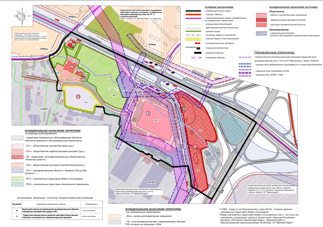 Кроме того, проектировщики намерены более эффективно использовать пустующие территории в районе улицы Социалистической — рядом с существующими заводами МАЗ и МЗКТ. Здесь зарезервируют участок под строительство нового производственного предприятия с базовой санитарно-защитной зоной до 50 метров (на плане — № 10). Тут же в будущем пройдет новая улица местного значения — Проектируемая № 1.