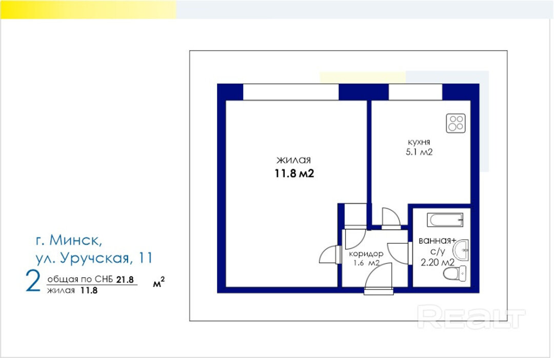 Пятиэтажный дом на Уручской, 11 был построен в 1969 году. Капремонт тут прошел в 2023-м. Однушка продается на первом этаже и занимает 21 м². Это малосемейка. Площадь кухни — 5,1 м².