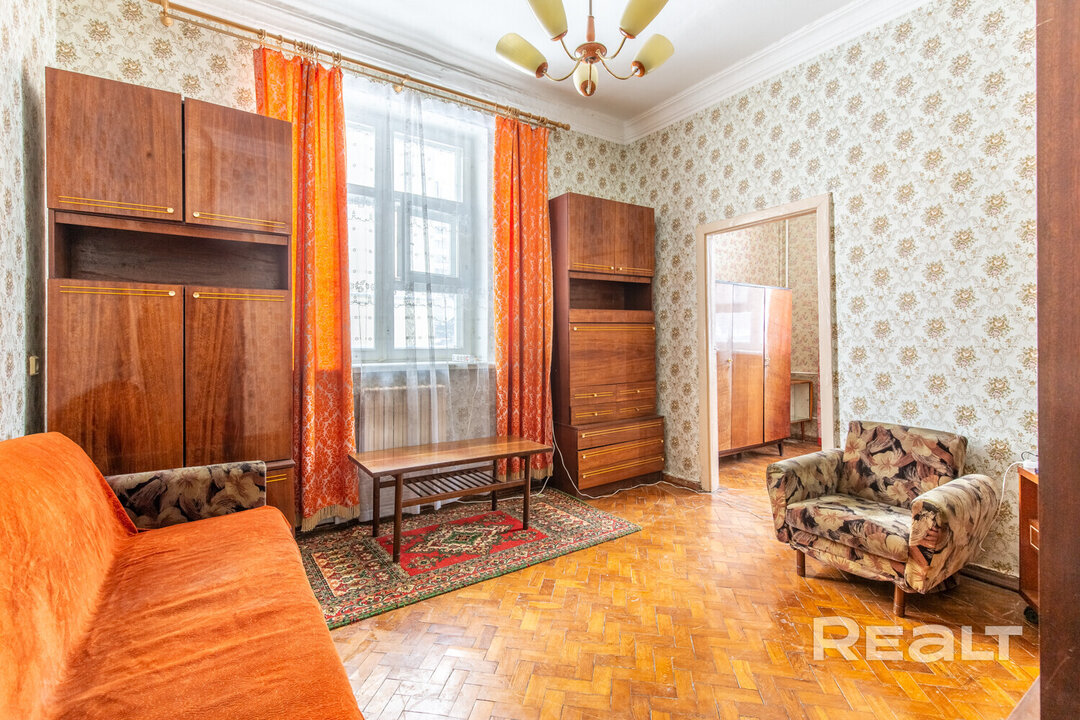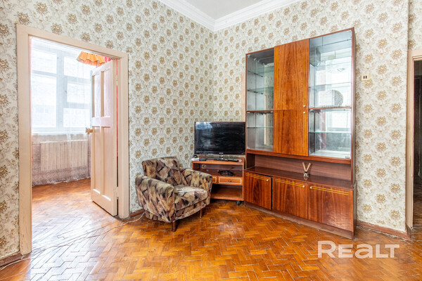 281На минской улице Октябрьской — всего два небольших жилых дома. И жилье на продажу там выставляют редко. Но недавно на Realt в продаже здесь появилась квартира в сталинке, где остановилось время. Рассмотрим это предложение подробнее.