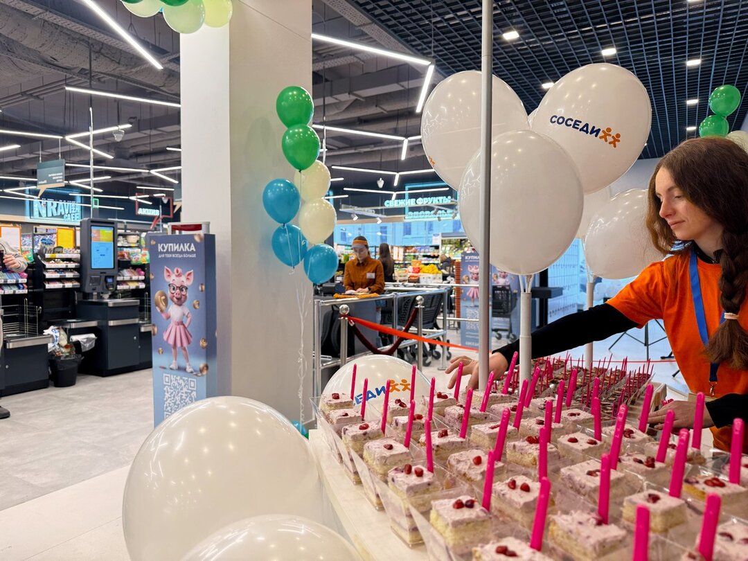 237Сегодня в квартале «Северный Берег» состоялось открытие нового супермаркета сети магазинов «Соседи». Магазин заработал по адресу — улица В. Цвирко, 71. В торговой точке площадью 600 квадратов применили новый формат Nravizza Café и открыли большое количество касс самообслуживания.