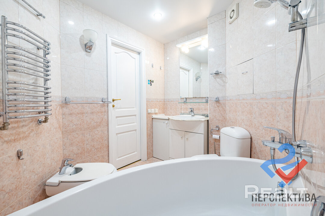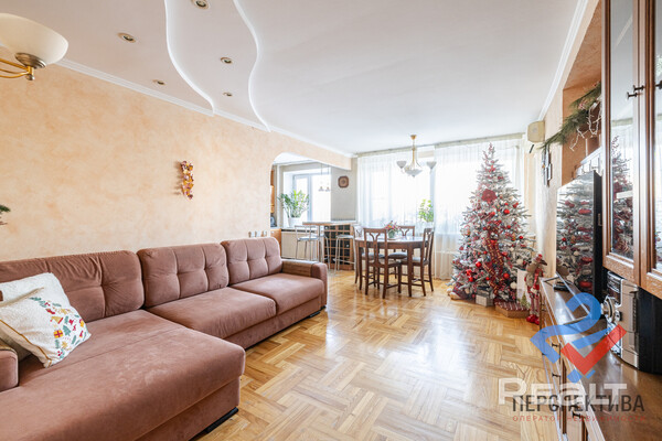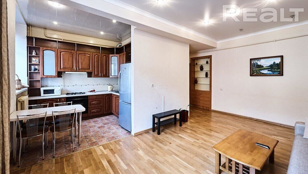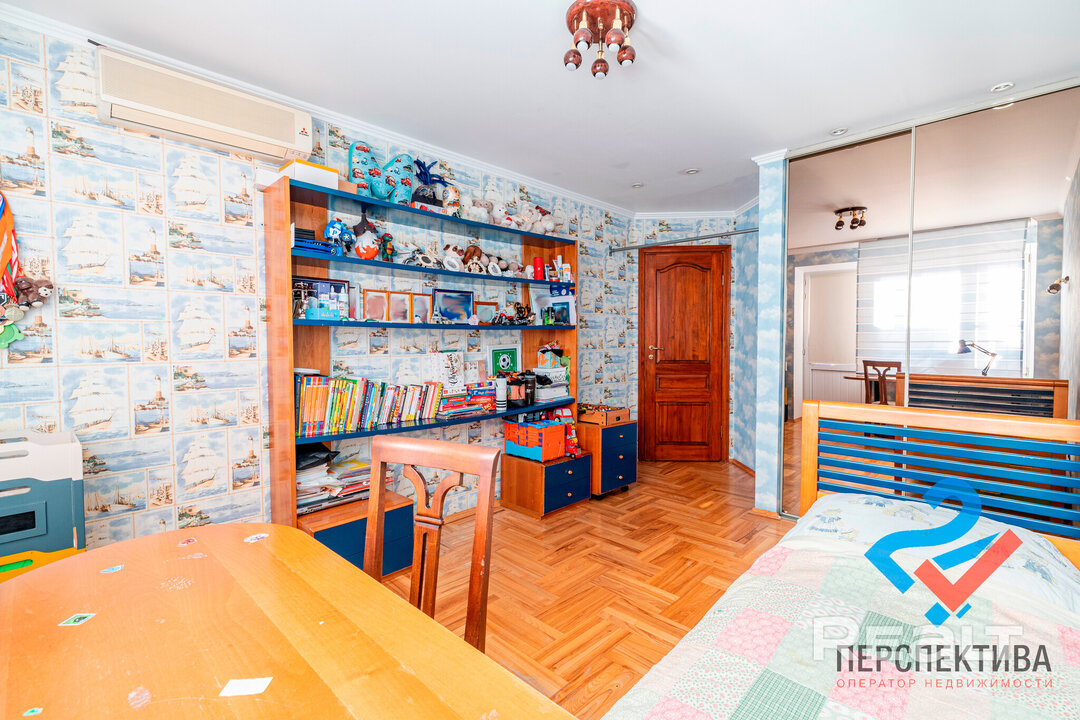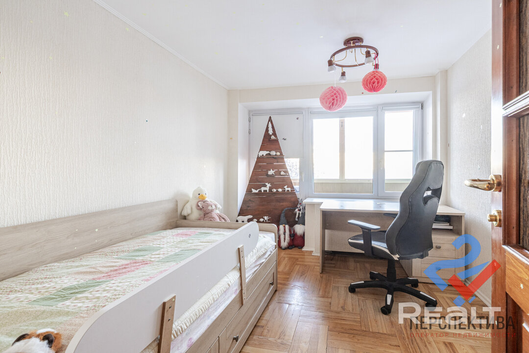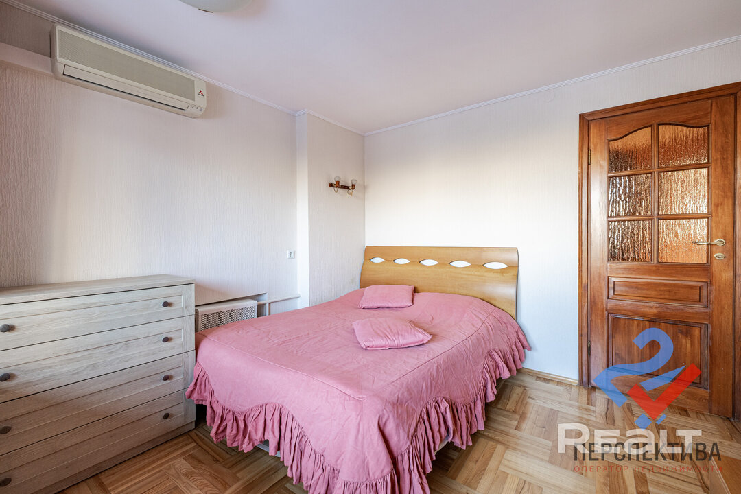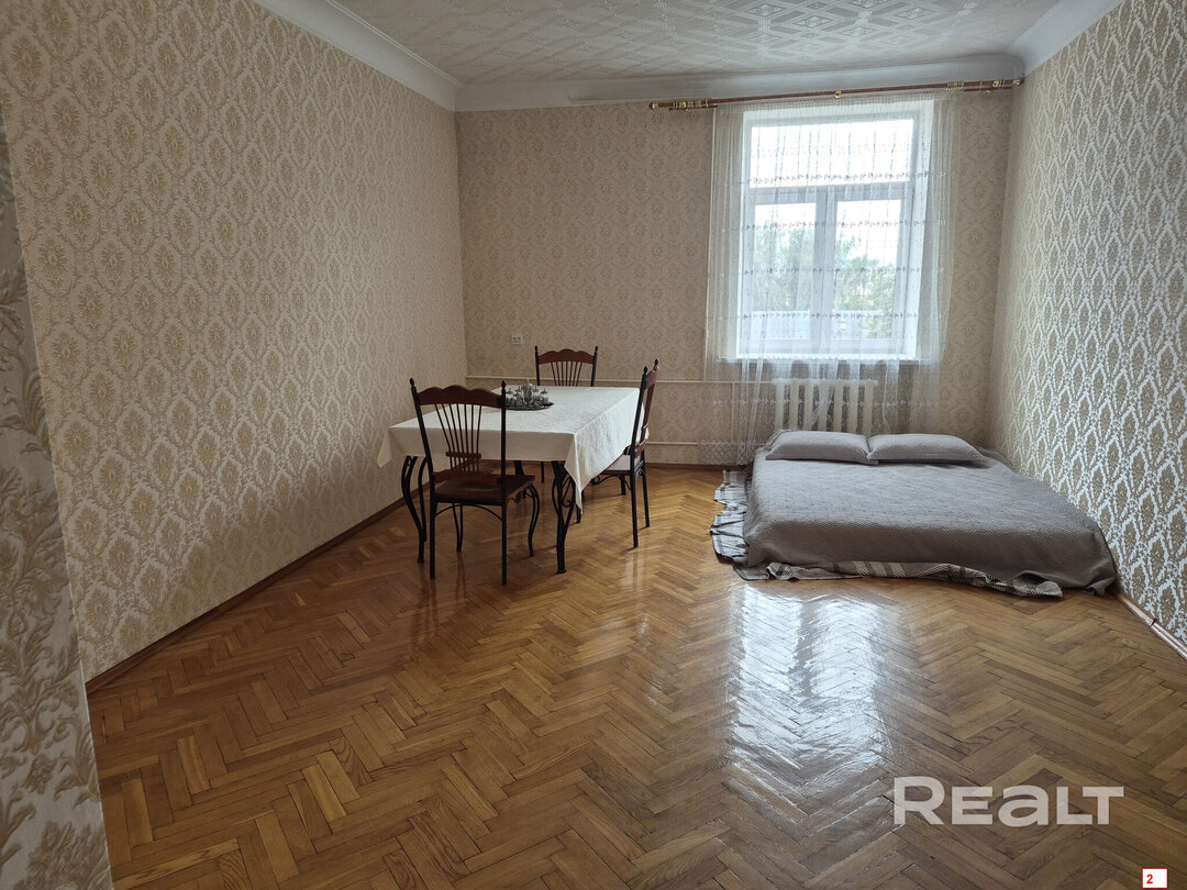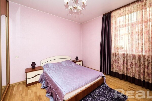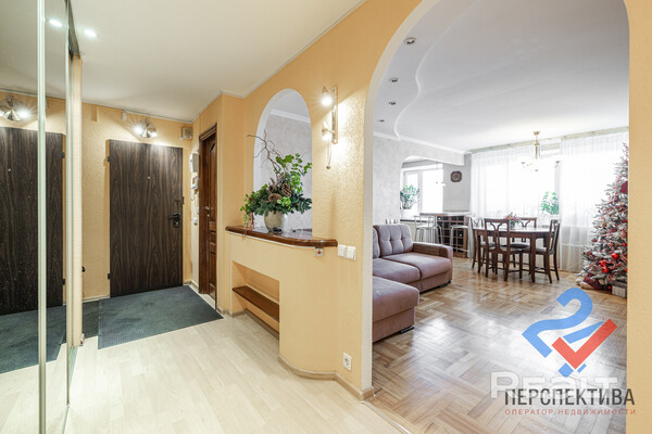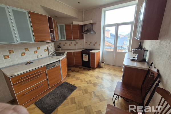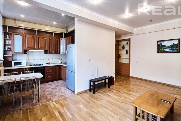 Самая дорогая квартира выставляется по адресу Максима Танка, 10. Это пятикомнатная квартира площадью 104,9 м² находится на третьем этаже. Кухня и гостиная тут объединены. Остальные комнаты — три детские и одна хозяйская спальня. В жилых комнатах на полу лежит паркет, а санузлы облицованы плиткой.