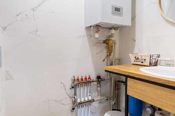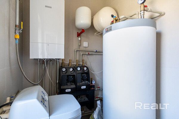 Отапливается дом на газу, с помощью теплых полов и радиаторов отопления. Введен и центральный водопровод. А вот канализация тут местная, есть ливневка.