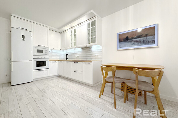 Начинаем нашу подборку с евротрешки в Минск-Мире. Второй этаж 25-этажного дома 2024 года постройки. Это дом «Румба» в квартале Мировых танцев по адресу Брилевская, 27. До станций метро «Аэродромная» и «Ковальская слобода» можно подъехать на транспорте, это чуть меньше двух километров.