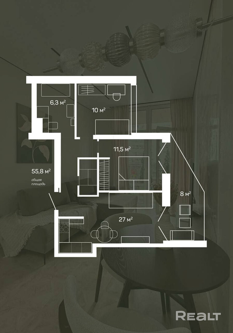 Стоимость квартиры — 170 тысяч долларов (3 041 доллар за квадрат). Минимальный первый взнос для покупки в лизинг — около 48 тысяч долларов. В объявлении можно просчитать комфортные условия лизинга.