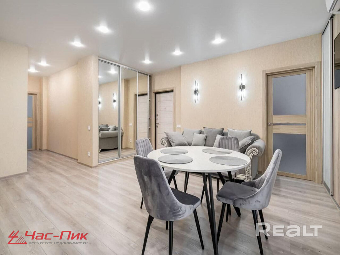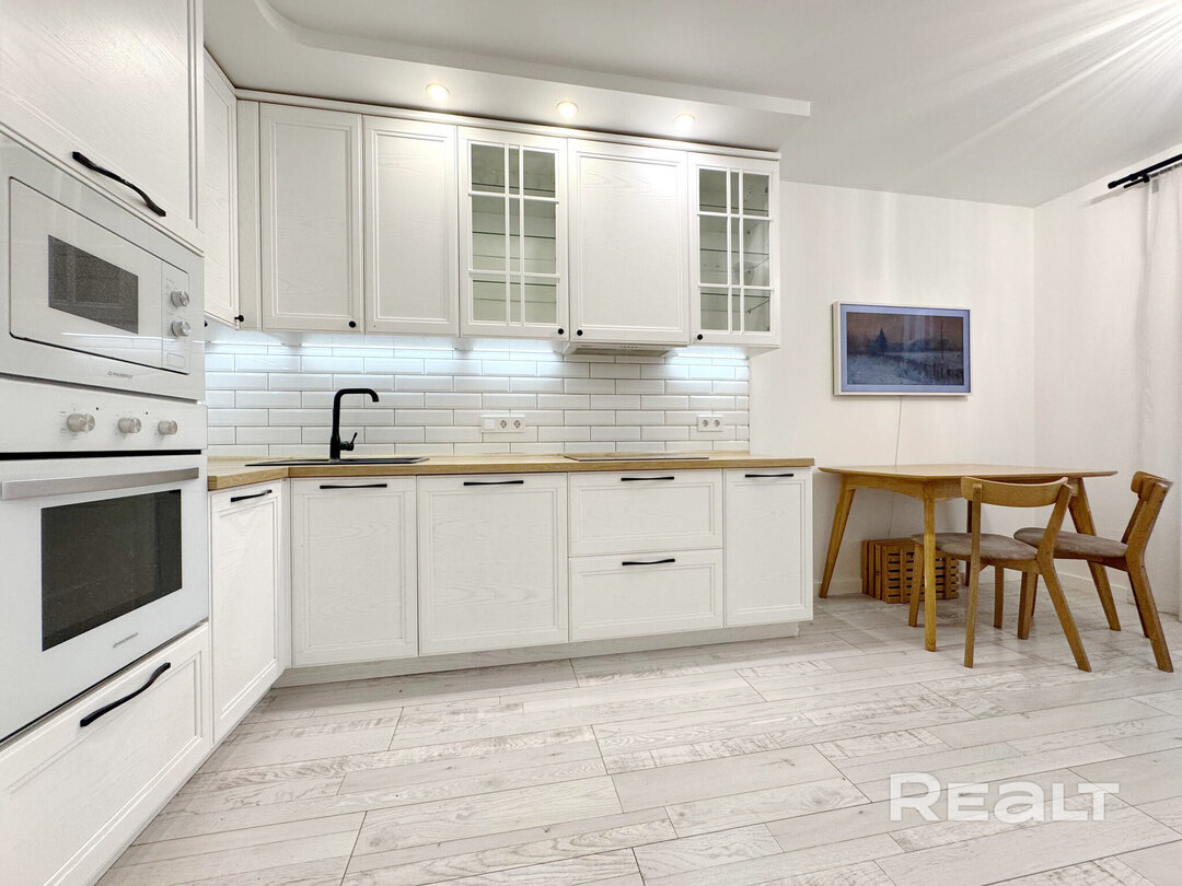 Один из двух самых дорогих вариантов подборки — евротрешка в ЖК «Парк Челюскинцев» на улице Макаенка, 12Д. Это между станциями метро «Парк Челюскинцев» и «Московская». До любо можно дойти меньше чем за 10 минут.