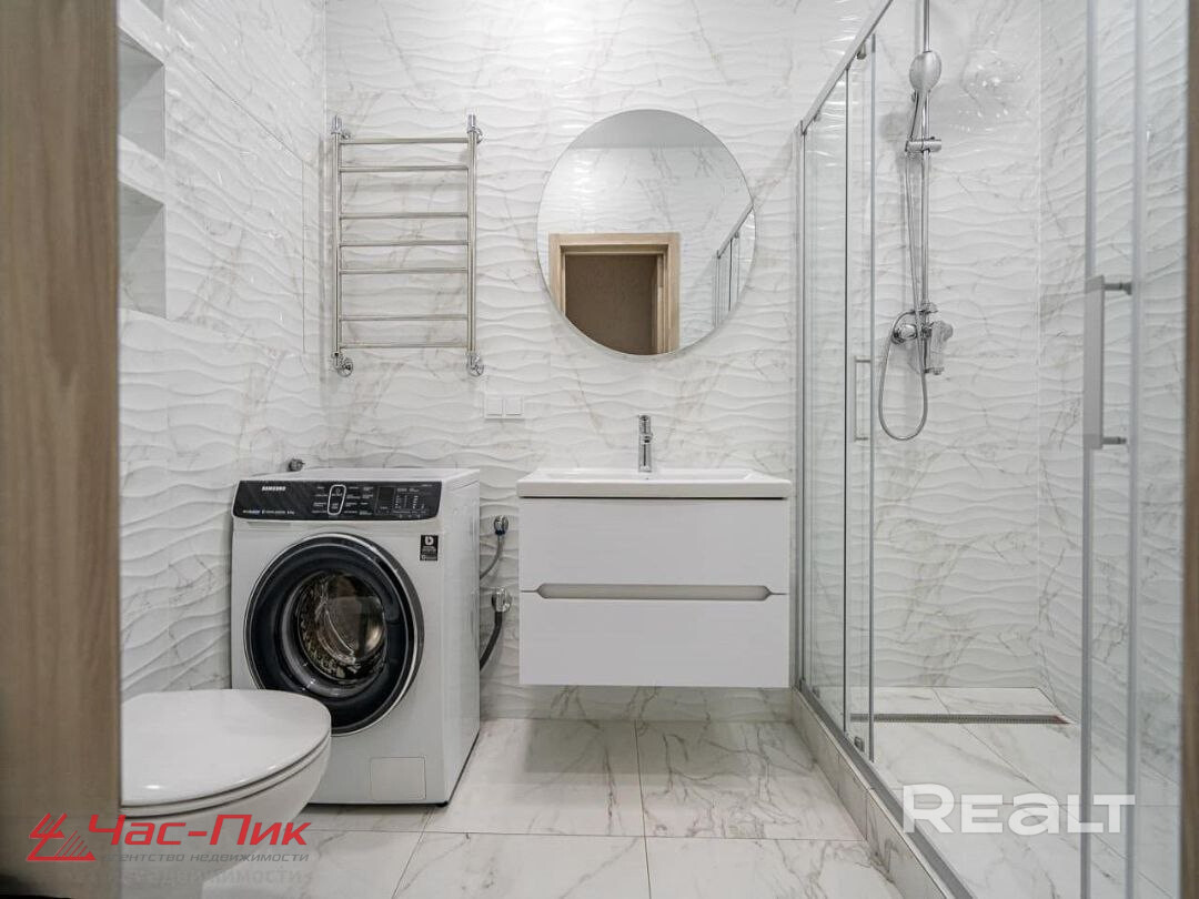 В совмещенном санусле установлена отдельно стоящая ванна, есть гигиенический душ и подключена стиральная машина.