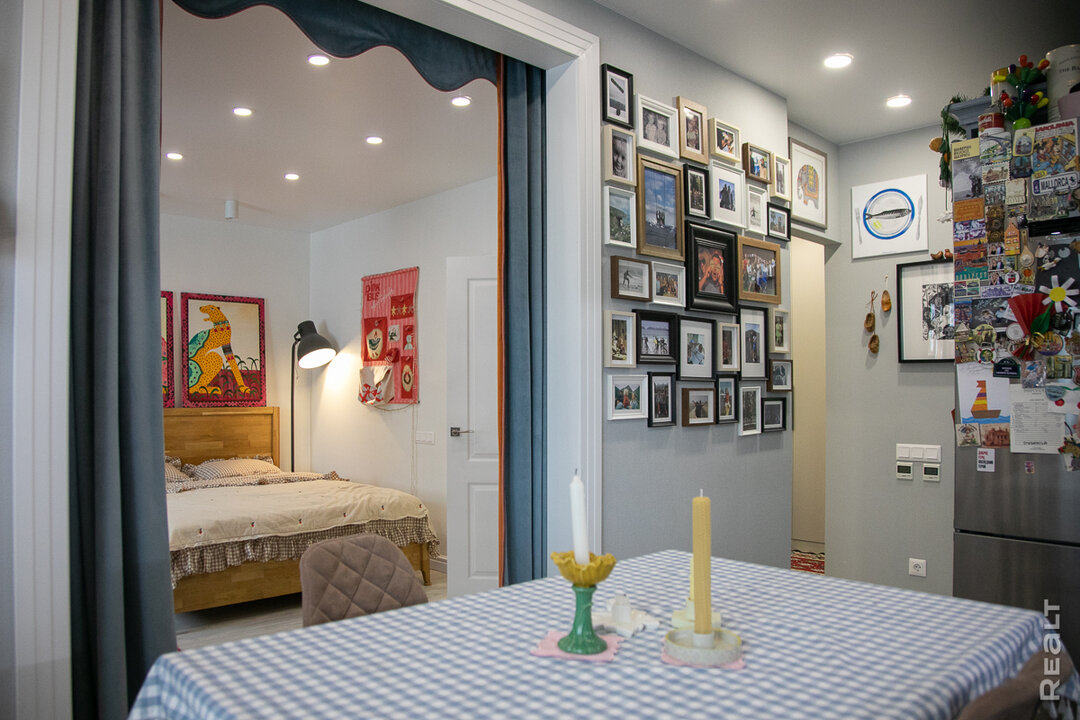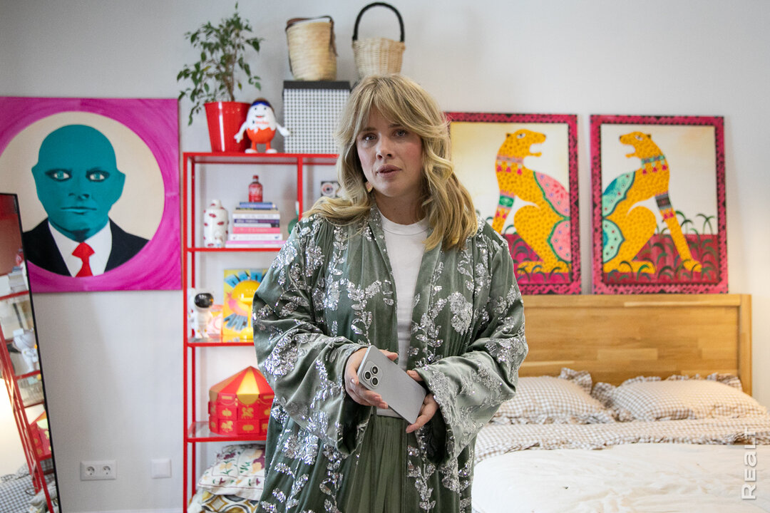 362Вечные муки выбора: поехать в путешествие или вложиться в жилье. Блогер Лия Руммо за первый вариант. В прошлом году она пустилась во все тяжкие, и посетила несколько стран. А ведь эти деньги могли бы помочь в покупке новой квартиры. Тогда бы и спальня переехала из гостиной в положенную отдельную комнату, и картины мужа не ждали очереди на показ. Realt встретился с девушкой в ее минской двушке. Новый смартфон HONOR X8d помогал нам фиксировать и запоминать все необычные интерьерные решения. Тем более, что Лия находила их в культуре разных стран. Мы поговорили не только о квадратах, но и о том, как не потерять себя в материнстве, замечать свои успехи, а не дотягиваться до приукрашенной планки в соцсетях. Жить по таким принципам Лия научилась после того, как в 20 лет узнала об онкологии. Рассказываем историю, которая отражается в интерьере квартиры.